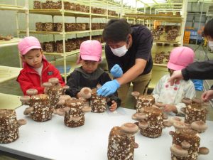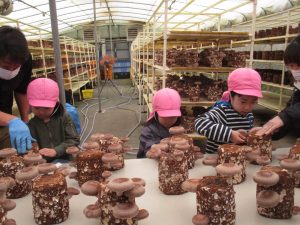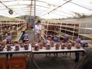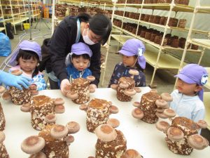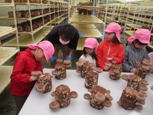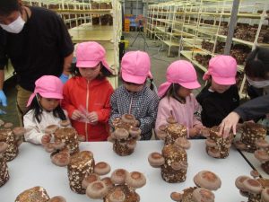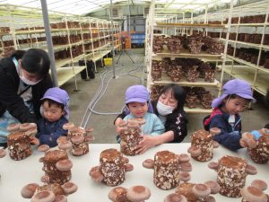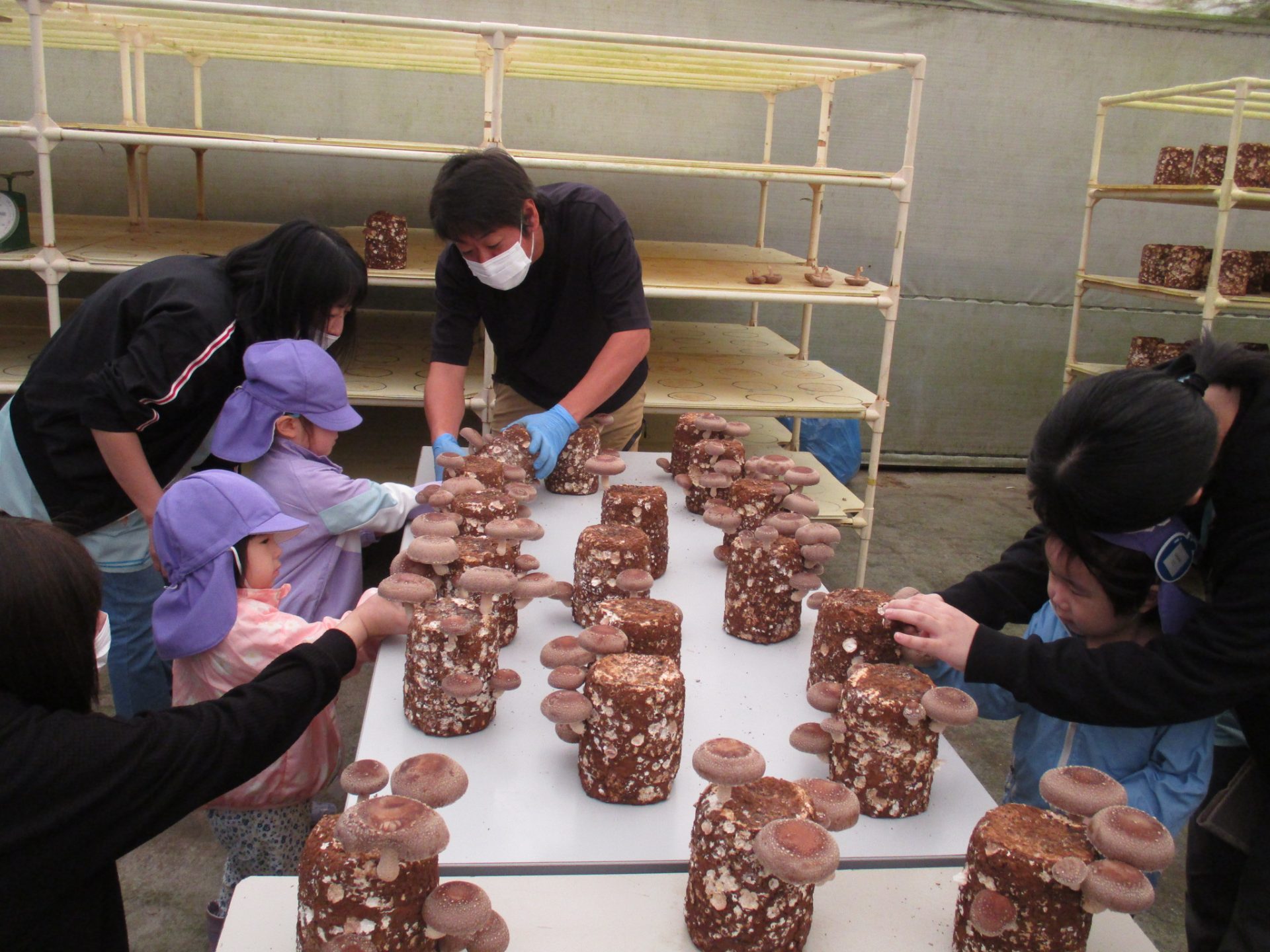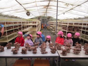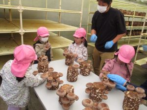 しいたけハウスに到着すると、まずはさくら組さんから収穫をしていきました。