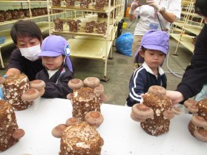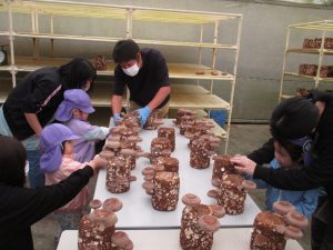 自分で選んだしいたけを手に取り、先生やハウスの方と一緒に収穫していきましたよ♩