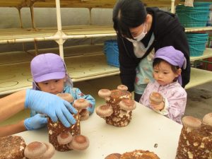 今日はさくら組・すみれ組でしいたけ狩りに出掛けて来ました!