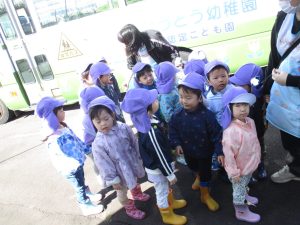 準備を整えて靴を履き替えて「行ってきま〜す!」と元気に挨拶をしてバスに乗り込んでいきました。