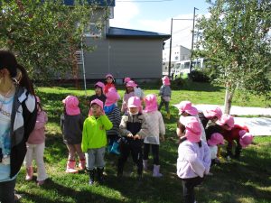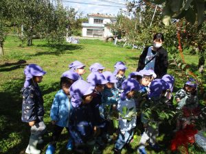バスから降りると「赤いリンゴが出来てる!」と大興奮だった子どもたち。
