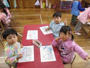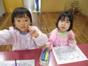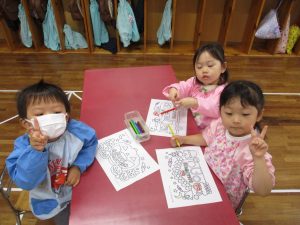 待っている間にはハロウィンのイラストが描かれた紙で塗り絵を楽しむ姿が見られていましたよ♩