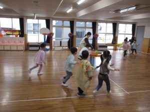 今日はさくら組さんがホールでゲーム遊びを行なっていました。