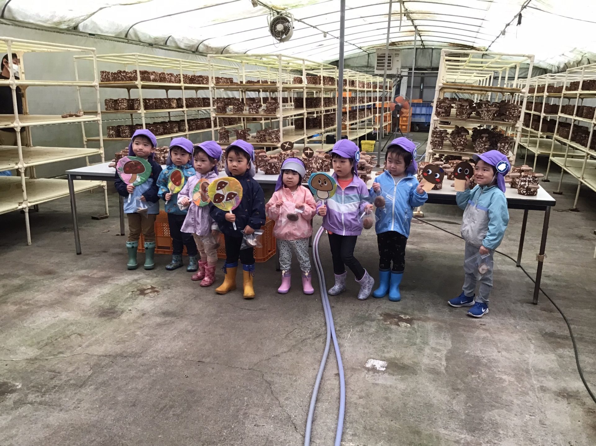 きのこが大好きなすみれさんなので、しいたけ狩りをとても楽しみにしてので、向かうバスの中は賑やかでしたよ😆