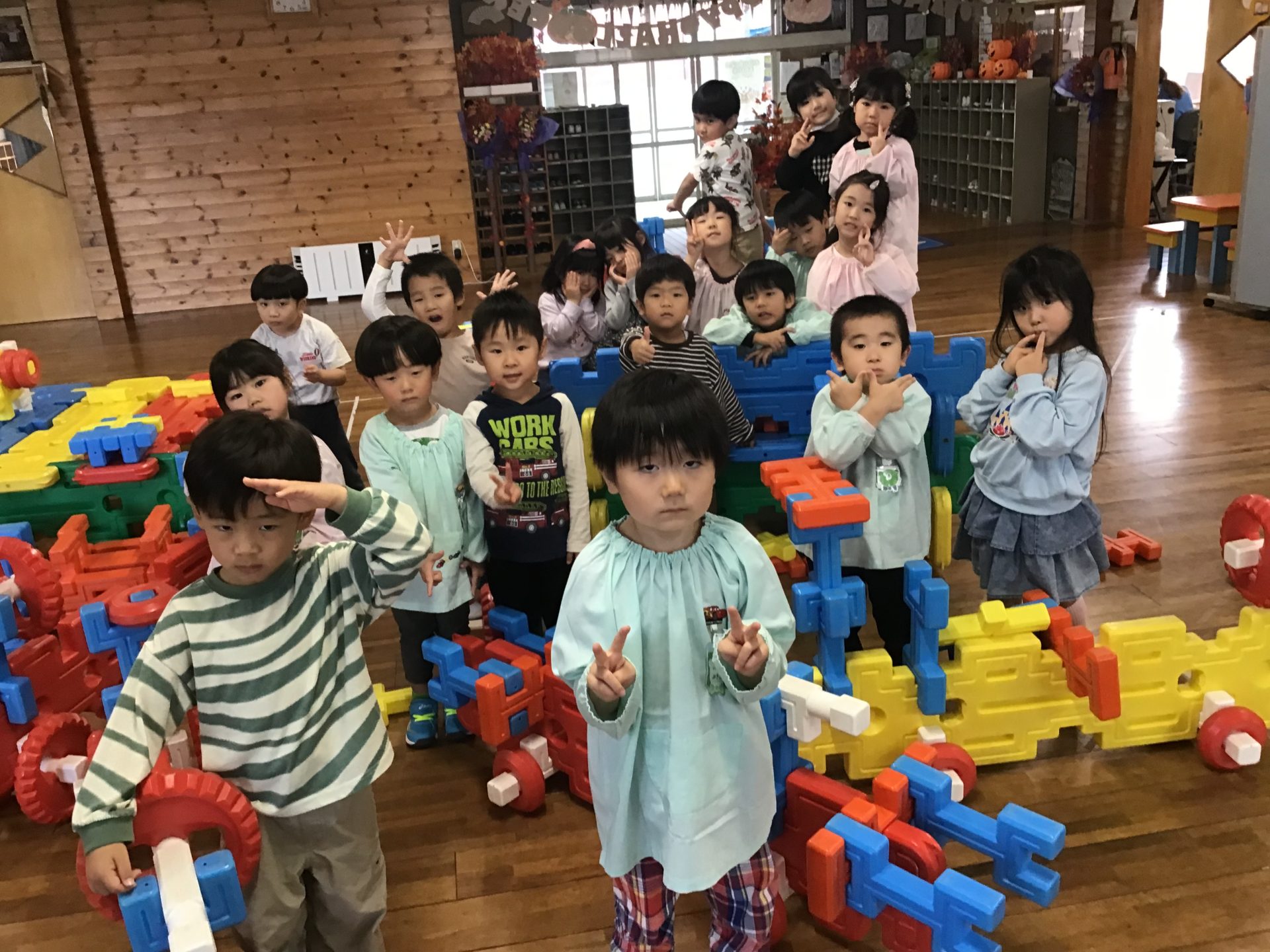 お遊戯のホール練習が始まると中々遊ぶ機会を取り入れる事が出来ないので、みんなでホール遊びを行いました🤩久しぶりのホール遊びに大喜びの子どもたち!!!お家を作って遊んだり、車でカーレースをしたりとそれぞれがやりたい遊びを楽しむ事が出来ていましたよ🎵今回、きくさんがハマっていたのはリレー!!!年長さんが運動会でリレーをしている姿を見て、やってみたい!と思ったのかブロックをバトンの代わりにしてホールをひたすら走っていました。しかもみんなバトンを順番に私に渡して来るので、私はずっと走りっぱなし(笑)運動不足だったので、みんなのおかげでとってもいい運動になりました💪筋肉痛でしたが、、、、お遊戯会が終わるまで中々ホール遊びは出来ないですが、また機会を見つけてホール遊びをしていきたいと思います!