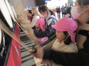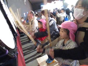続いてハネト体験と太鼓を叩く体験をさせて頂きました!