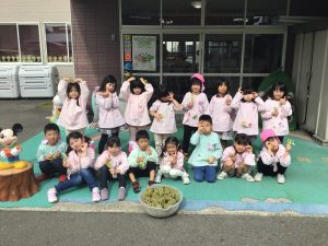 大きなしいたけを収穫でき、満足した表情の子どもたちでした(๑>◡<๑)