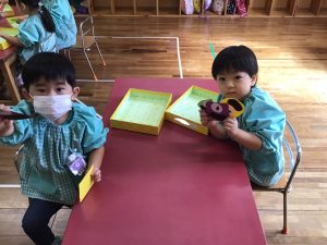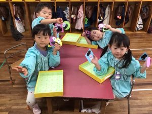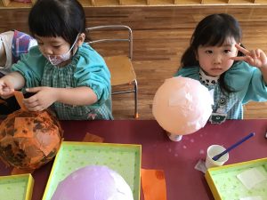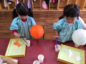 どうやらランタン風に仕上がる様なのですが、貼り付けて行く子どもたちの集中力がすごかった様で黙々と貼り付けていて、担任の先生曰く「まるで職人みたいだった」との事でした(笑)