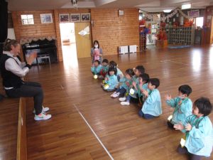 今日はすみれ組、きく組さんが英語教室に参加していました。