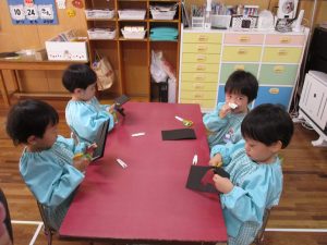 ハサミを使う際の約束事を確認してから活動に取り組んだので、スムーズにできた様です。