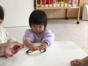 今日はハロウィンモチーフをハサミで切っていく活動を行なっていました。