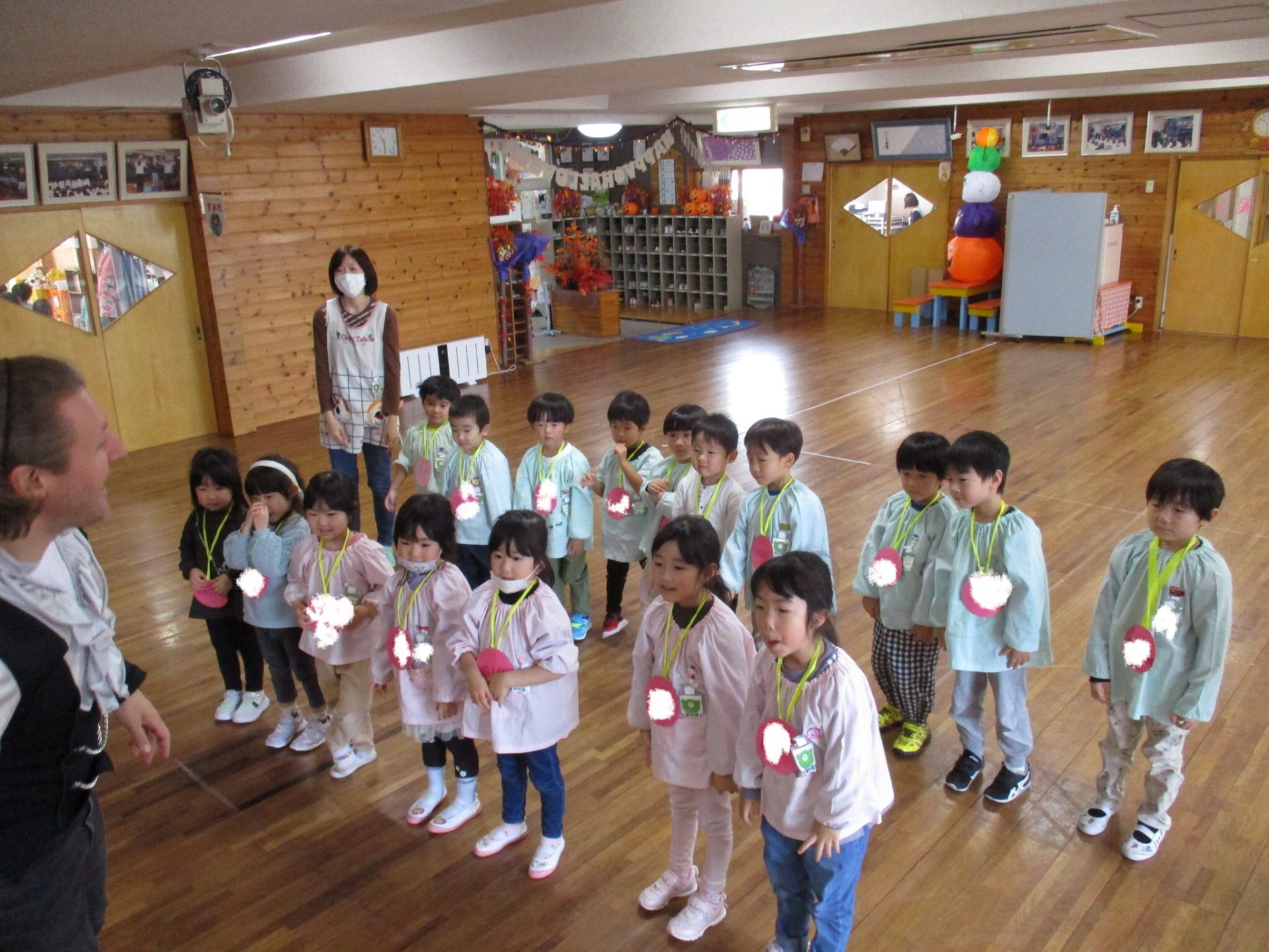 ハロウィンが近いという事もあり、オバケに変身してホールを走って見たり、体を沢山動かしながら楽しんでいる姿が見られていましたよ♩