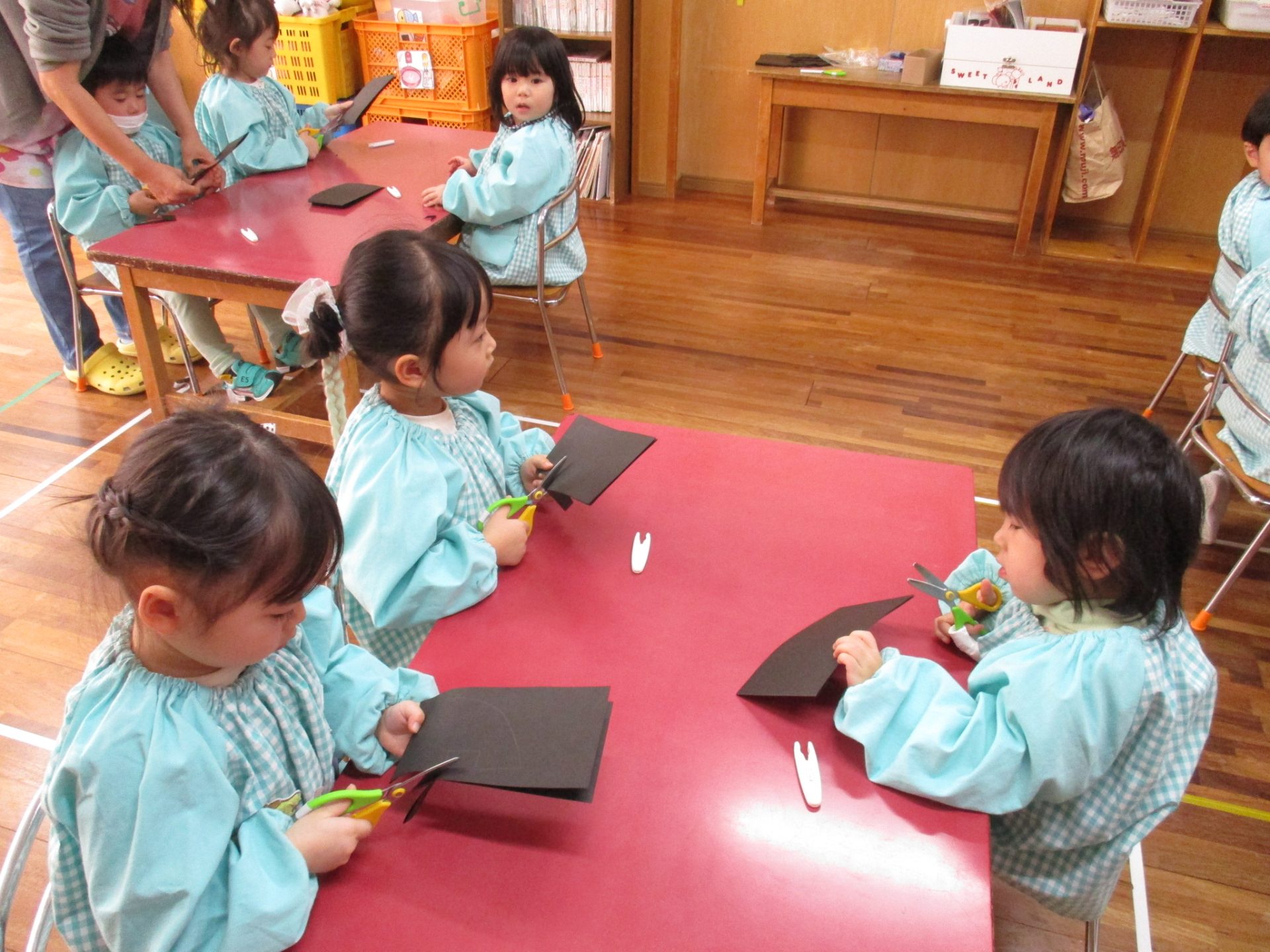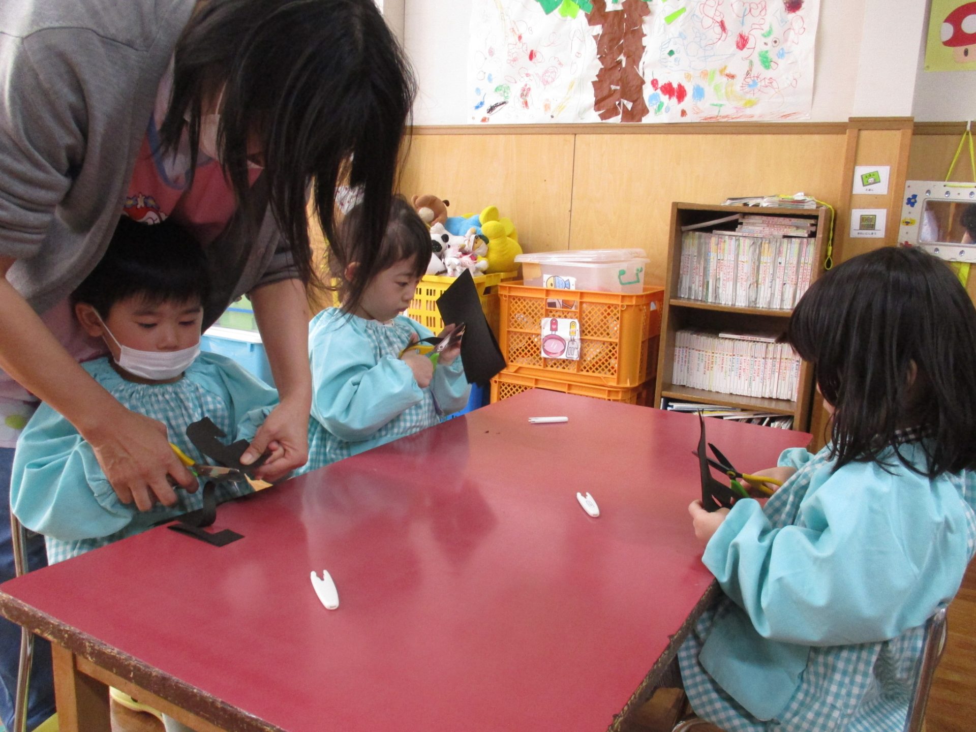今日はハロウィンモチーフをハサミで切っていく活動を行なっていました。