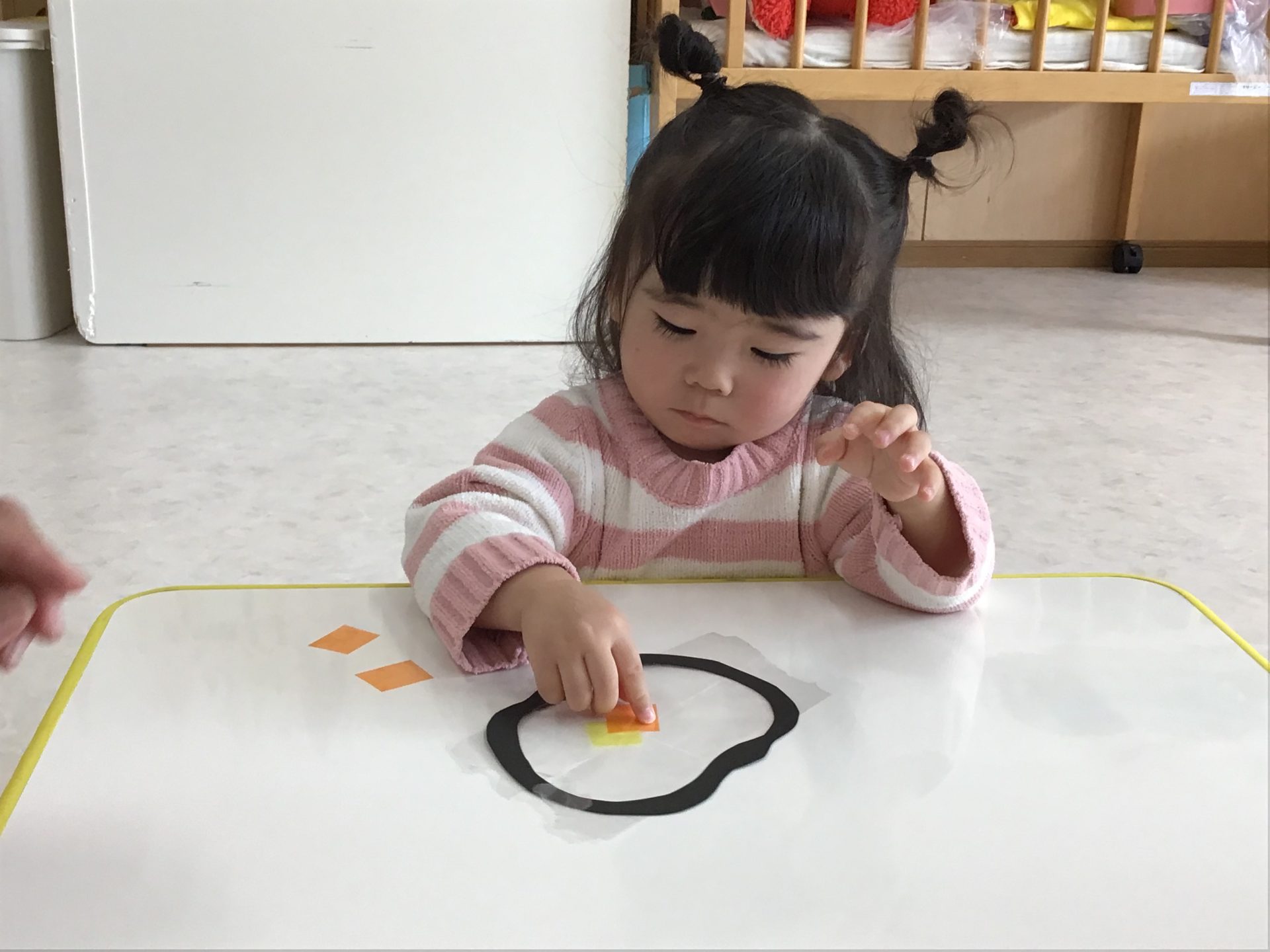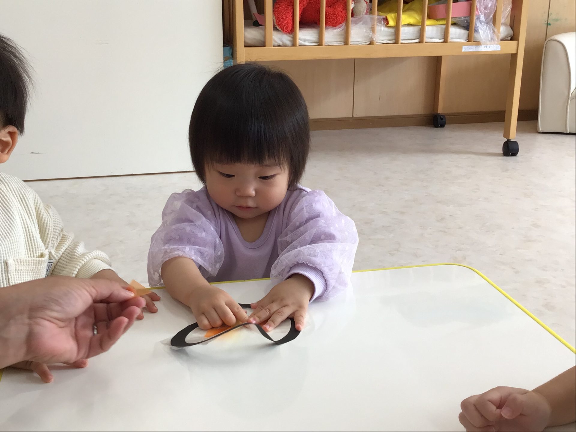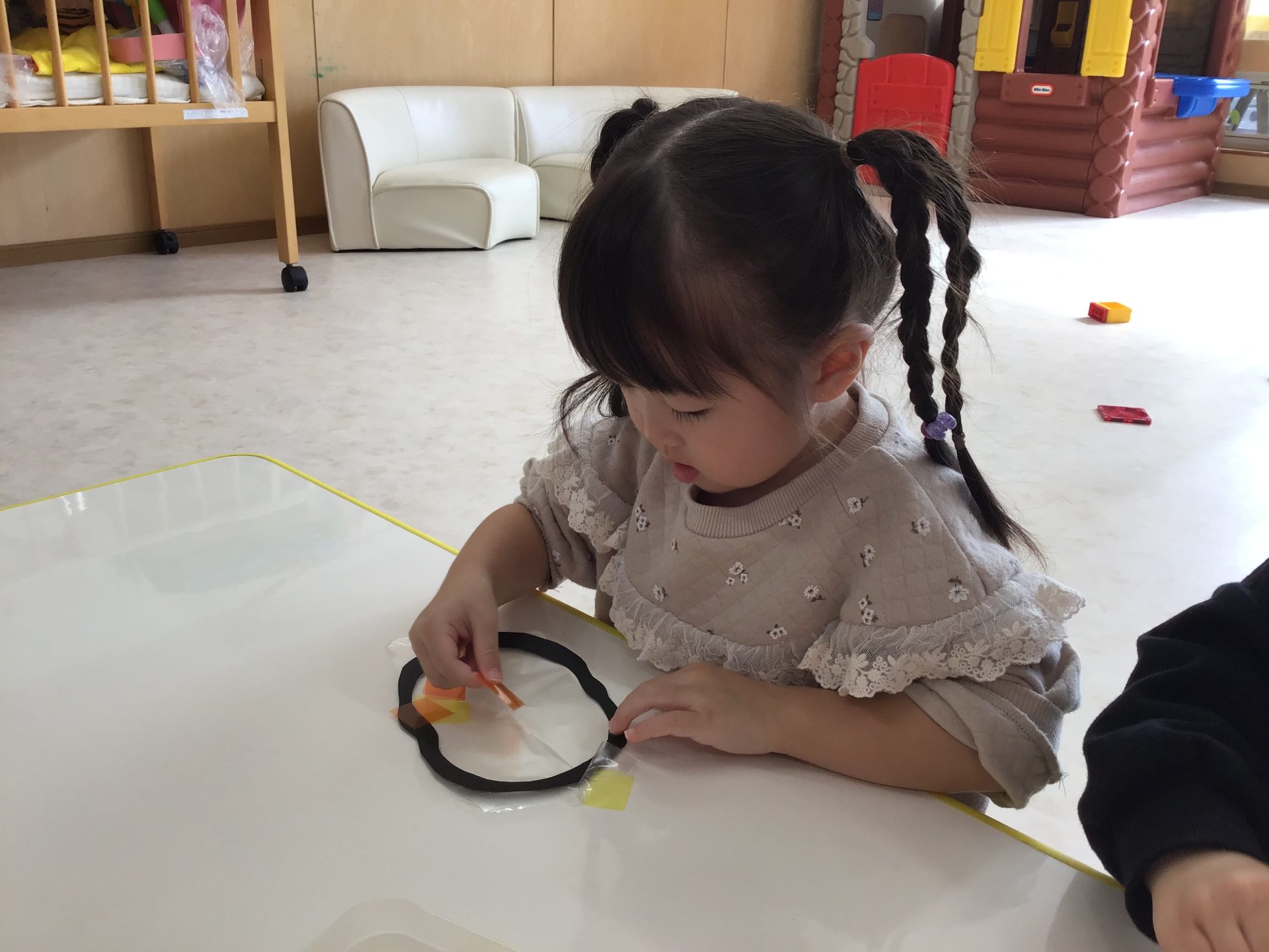 今日はお部屋の窓の所に貼る飾り作りを行なっていました。