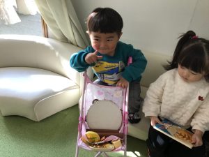 今日はキッズクラブのお部屋でおもちゃを出して遊んでいました。