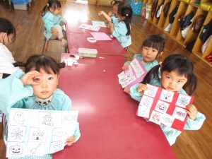 ハロウィンらしい作品に大喜びな子どもたちでした♩