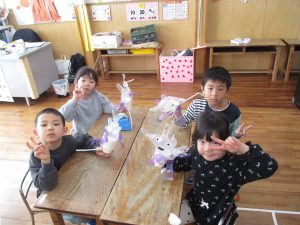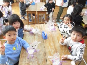 中には膨らませすぎて手袋が破裂してしまった子も・・・(笑)