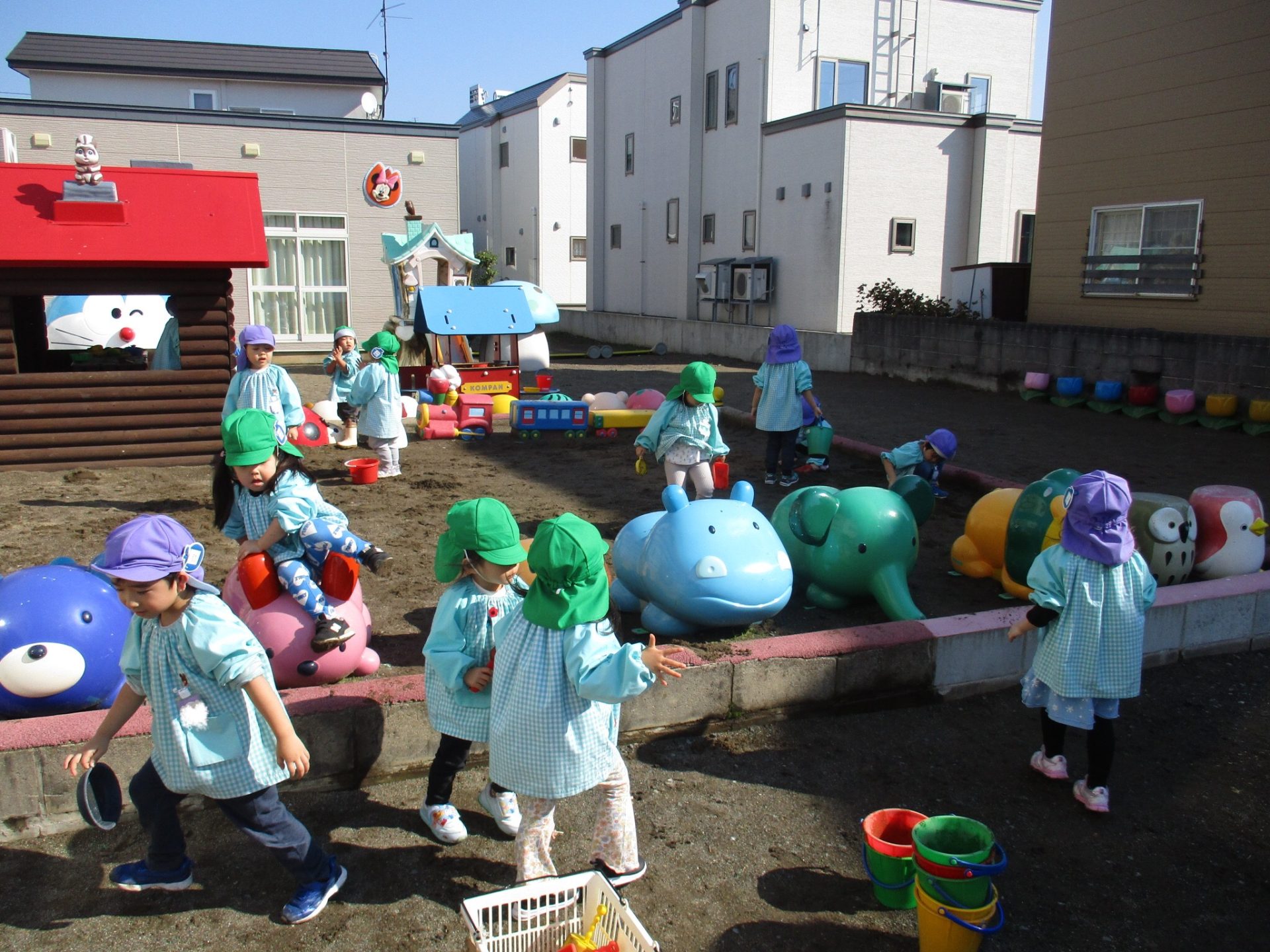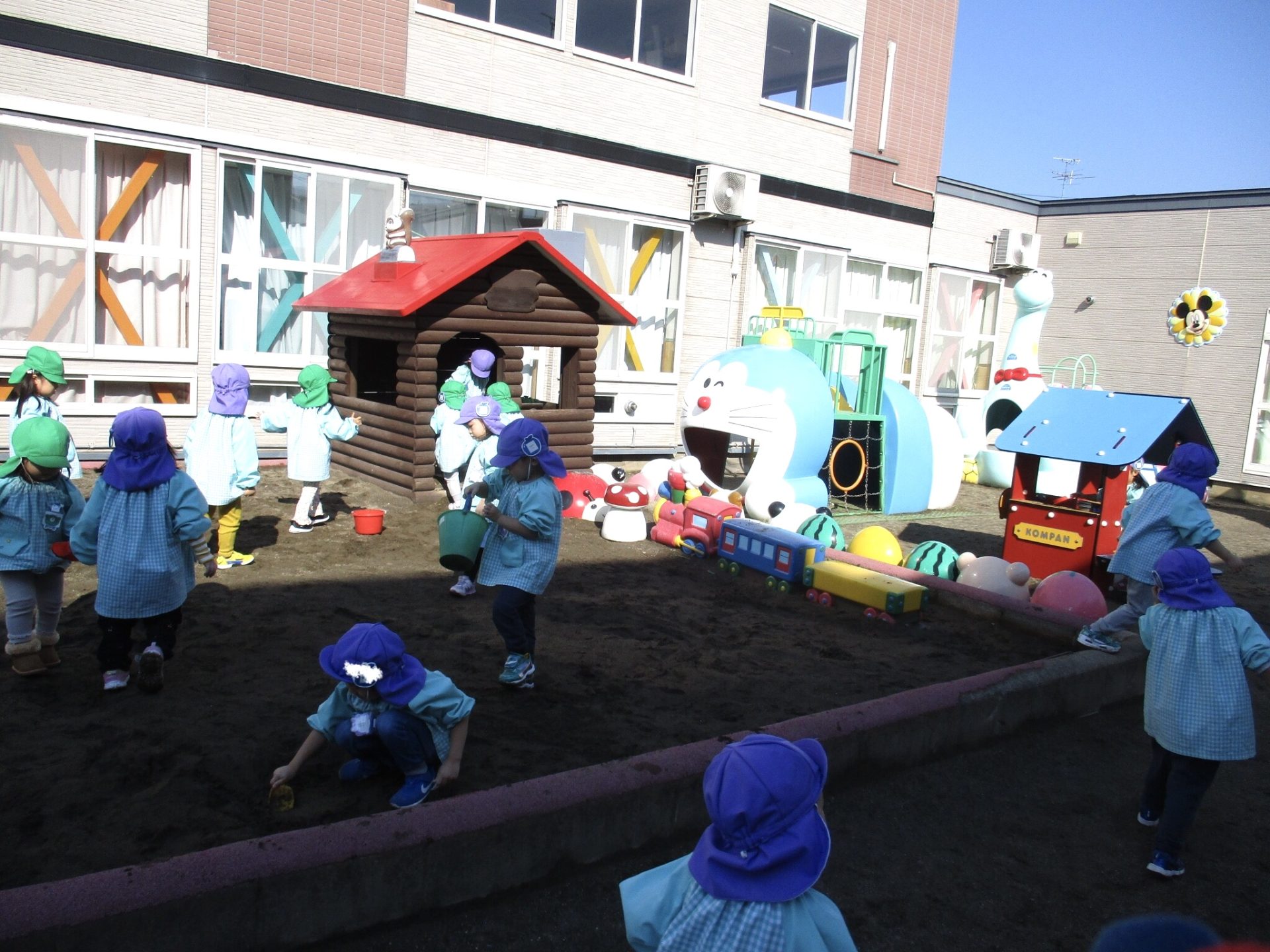 外では砂遊びが1番人気で、バケツやスコップを手に楽しそうに遊ぶ姿が見られていました★