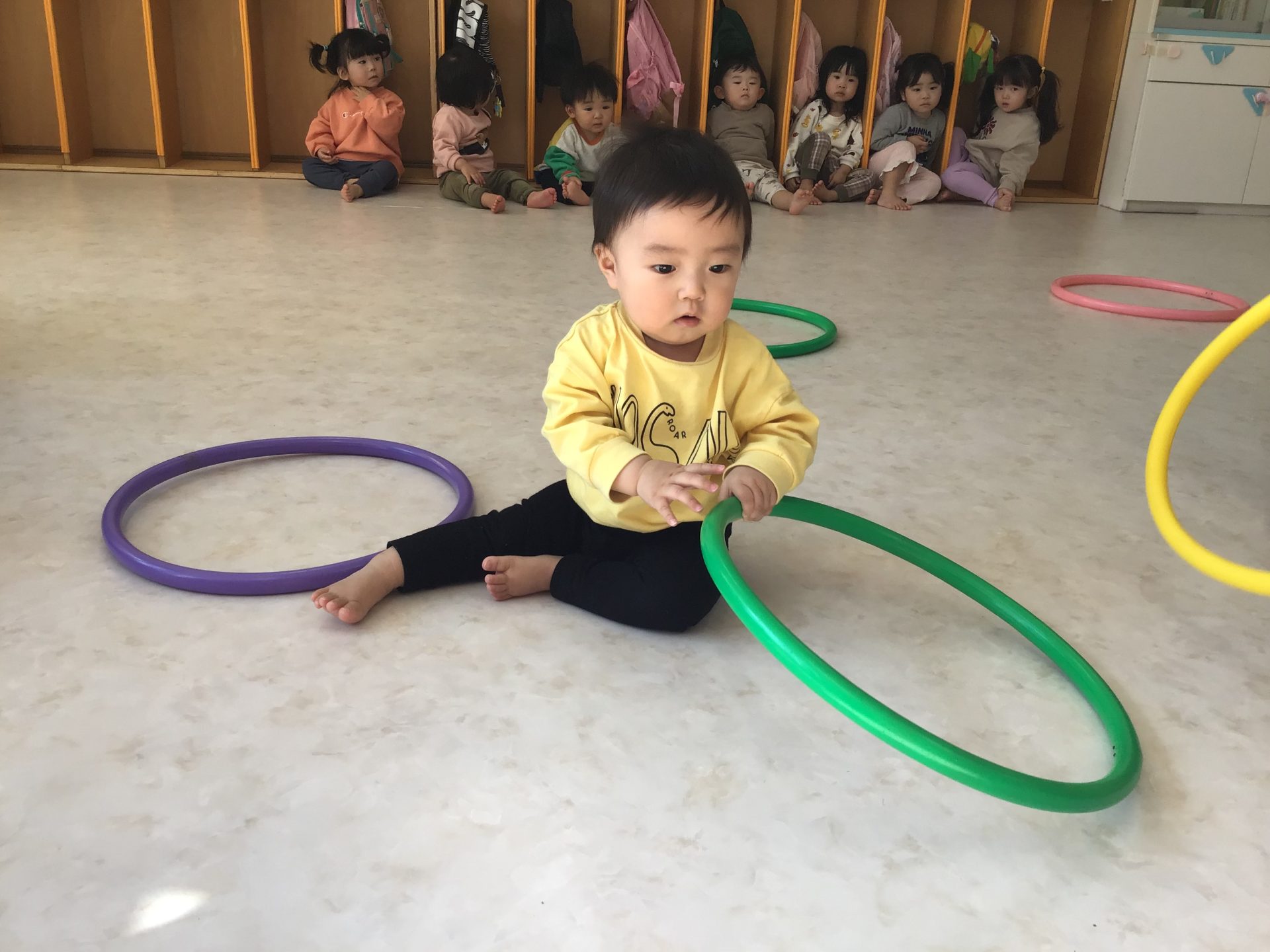 お友だちと競い合うようにボールを投げたり、フラフープの色を先生が指定していくと、その色の所へ移動して・・・と成長を感じる場面が見られていました★