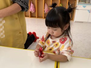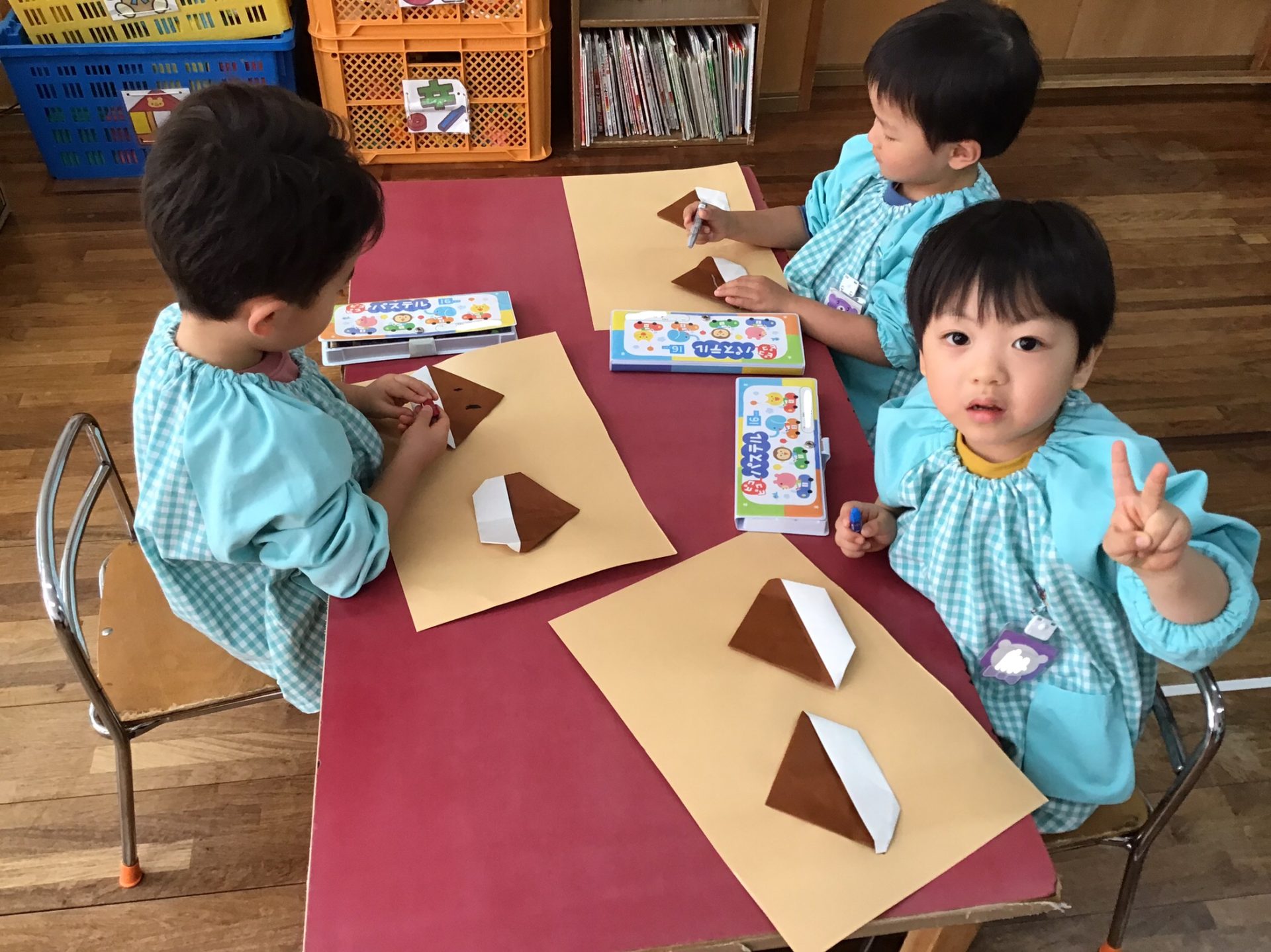 すみれさんでは、11月の折り紙製作にお絵描きをして、作品を完成させていました!