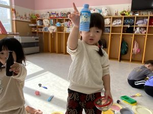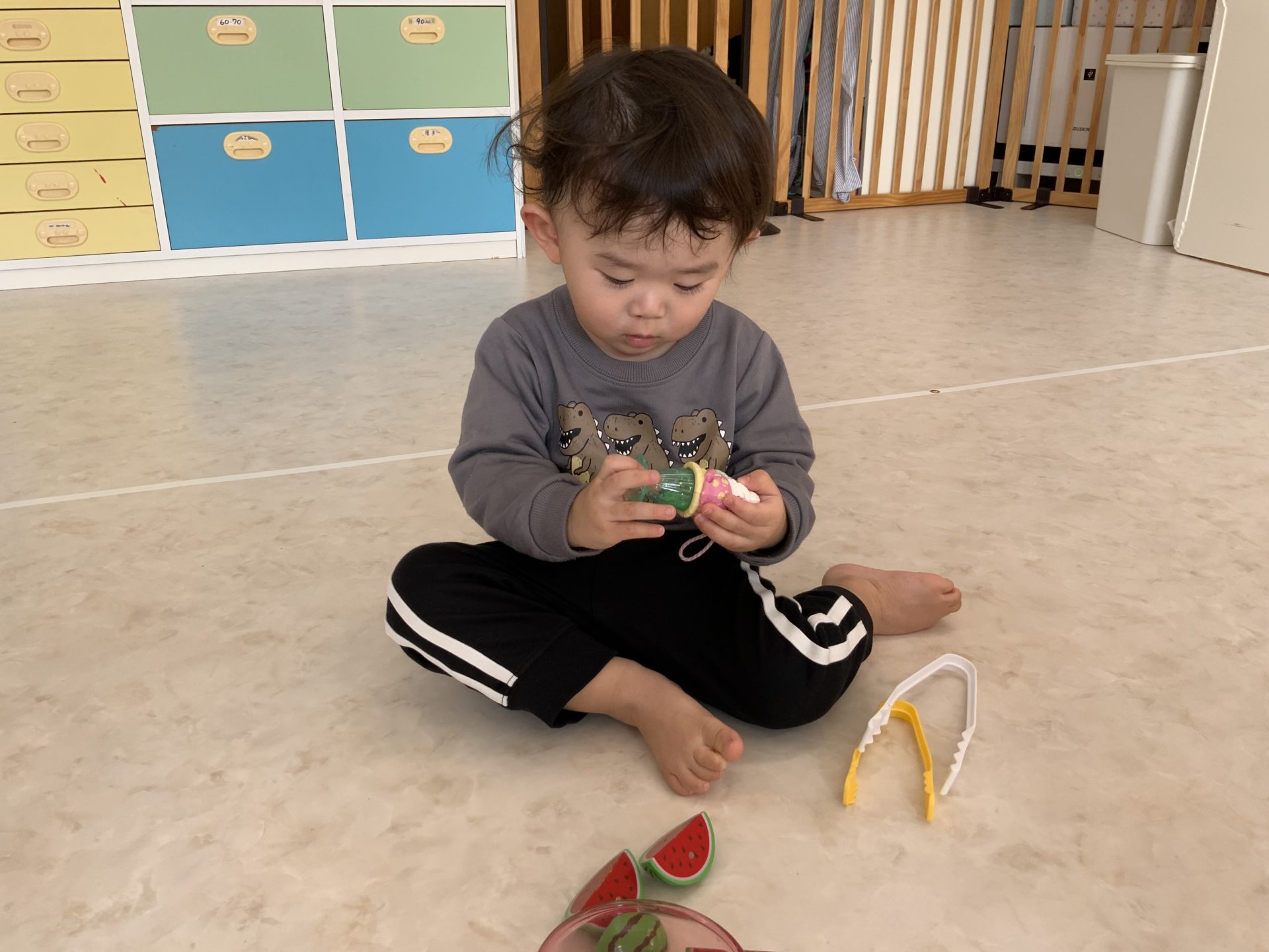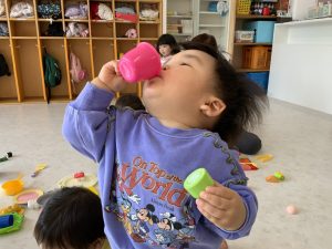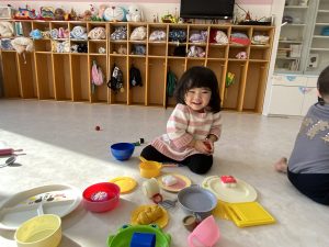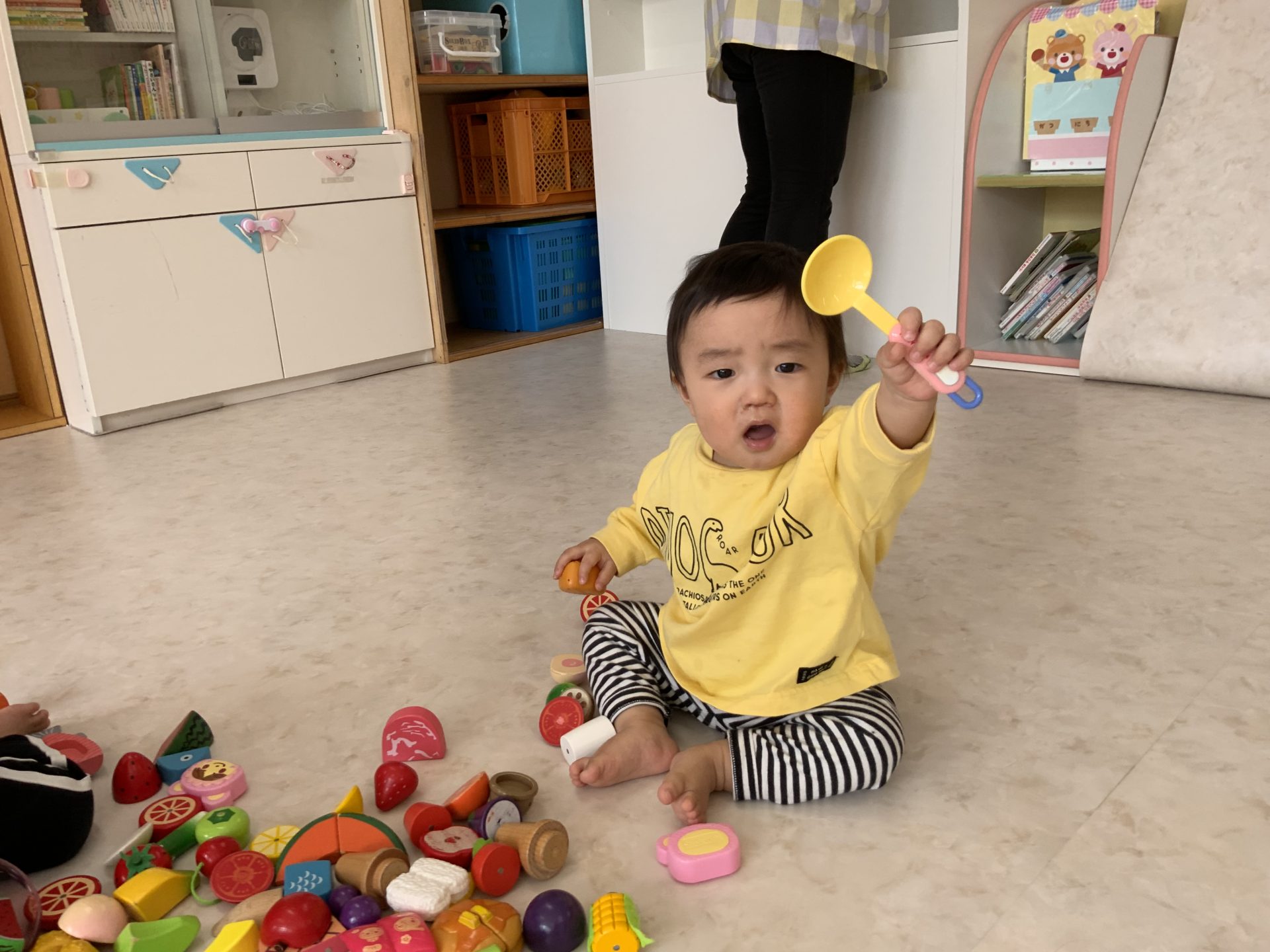 おままごとセットを使って食べたり飲む真似をする姿が可愛らしかったです♩