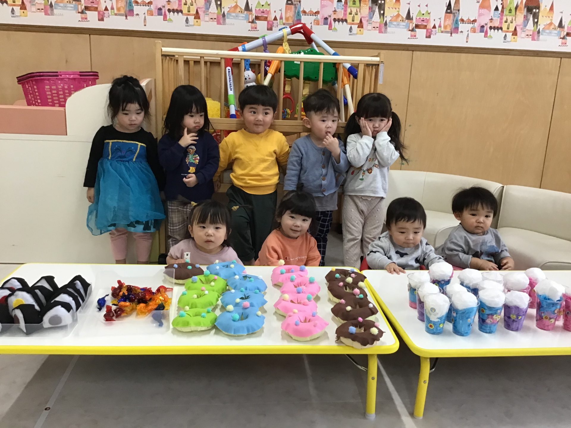 ステージに立つと0歳児さんは驚いていたようですが、最後まで頑張ってくれました。「可愛い」との声も聞こえてきてとても嬉しかったです。