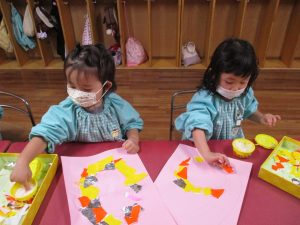 折り紙をちぎるのも貼るのも、ニコニコしながら取り組んでいましたよ♩