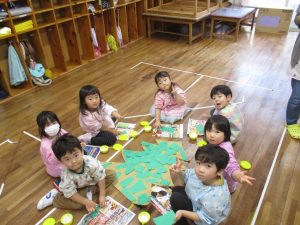 どちらもお友だちと協力をし合いながら一生懸命に取り組んでくれたおかげで、綺麗に仕上がっていましたよ♩