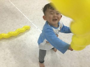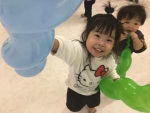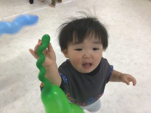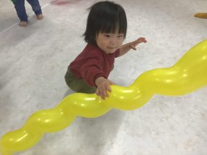 あまり見たことが無い形の風船で遊んでいて、子どもたちもニコニコ♩