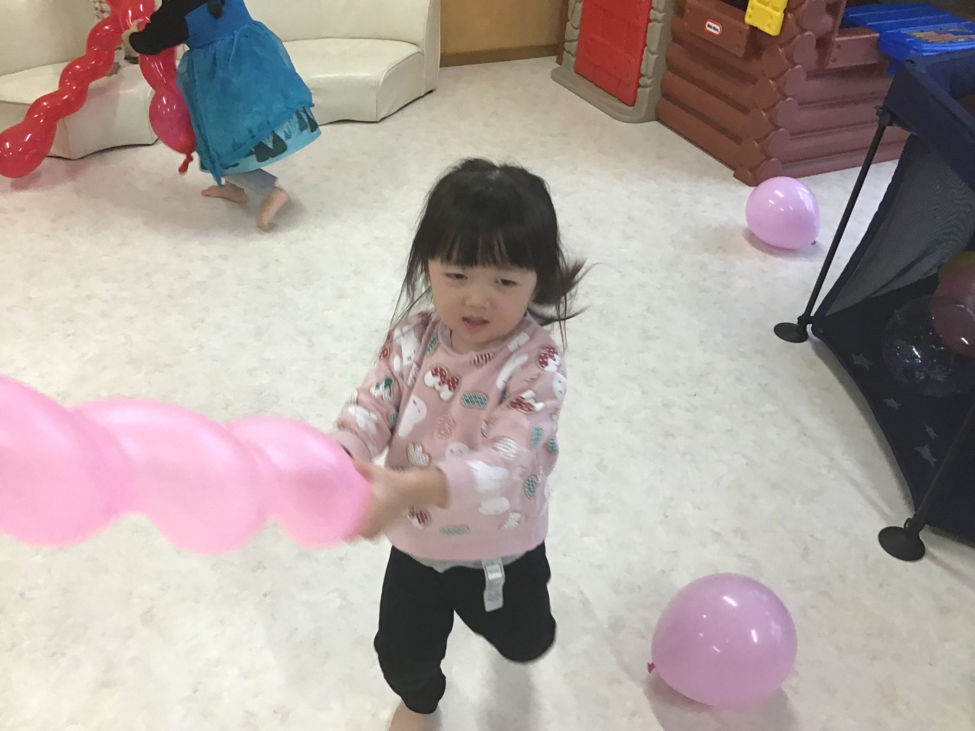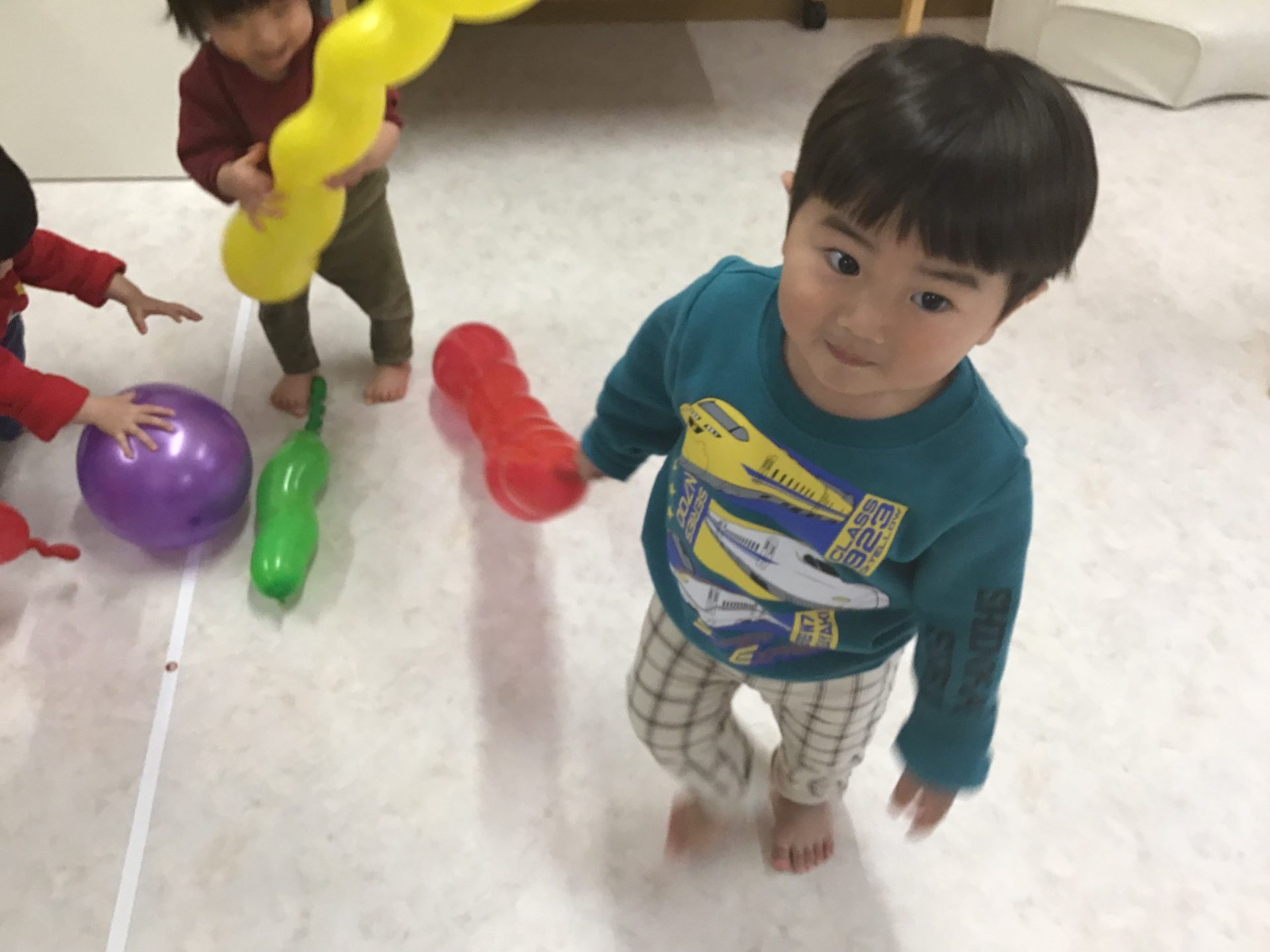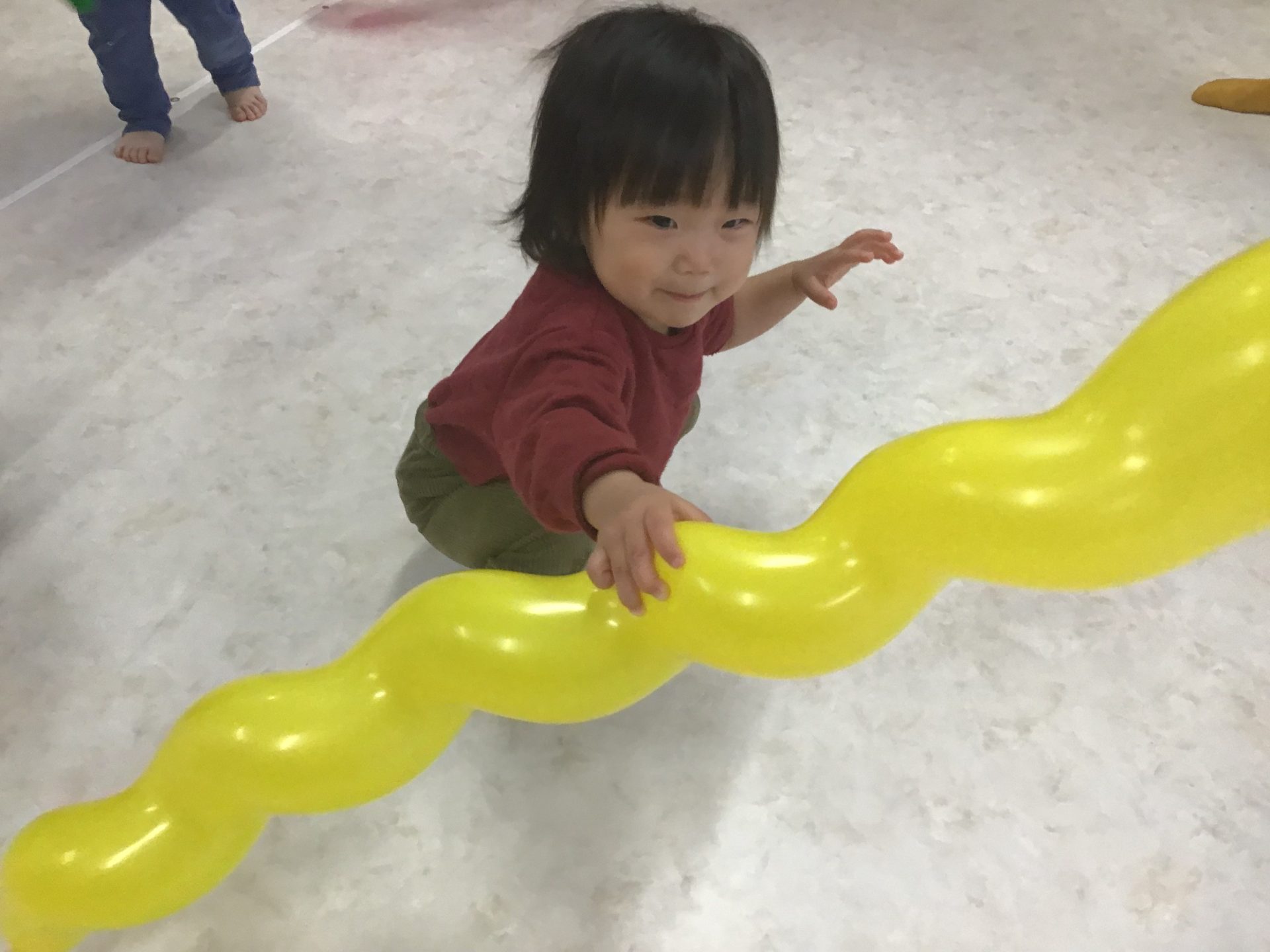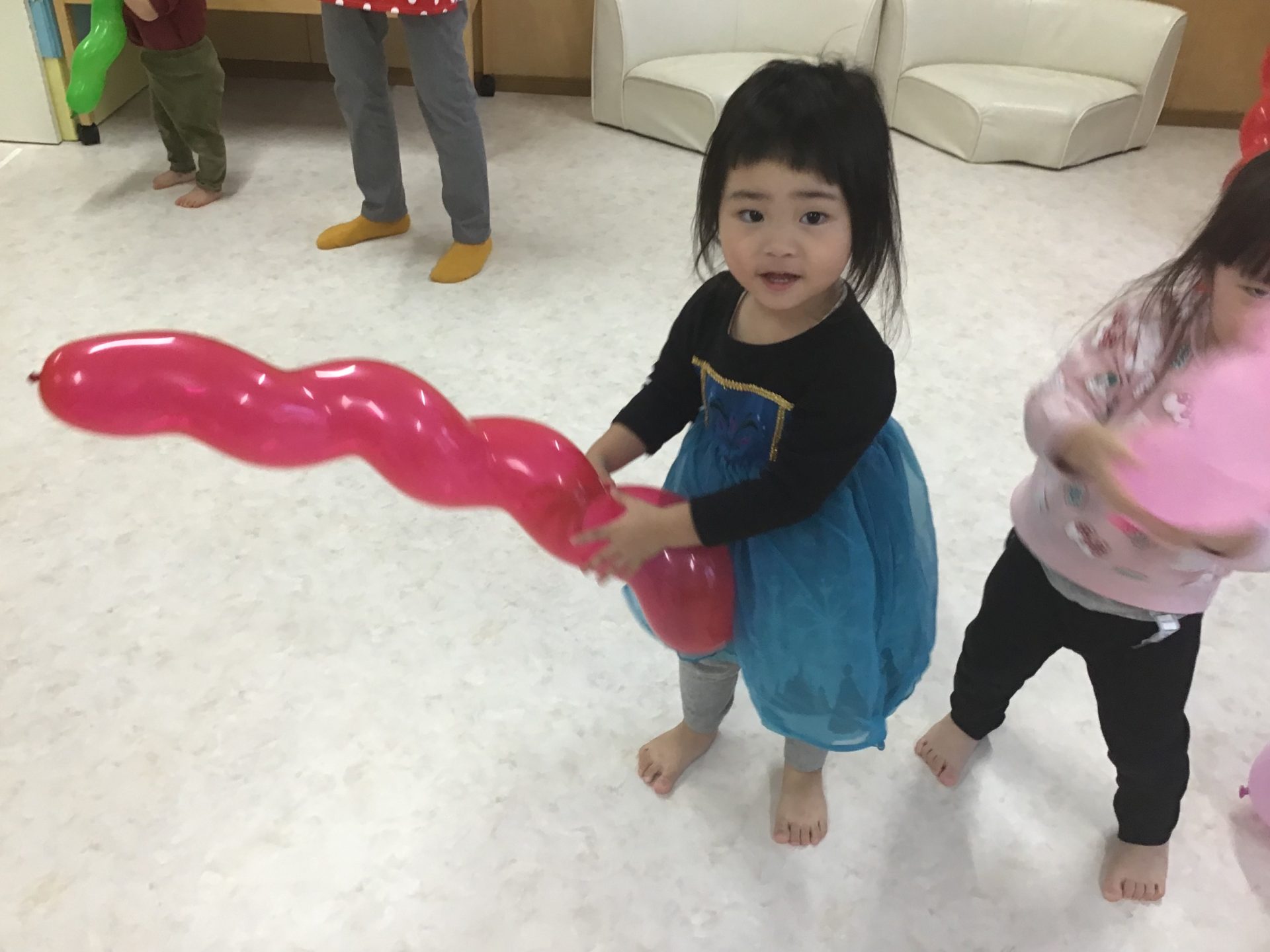 あまり見たことが無い形の風船で遊んでいて、子どもたちもニコニコ♩