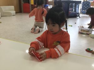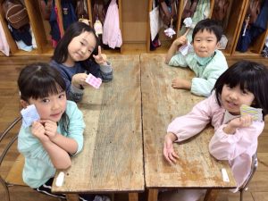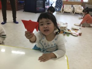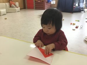 今月はサンタとツリーを作る様で、何人かずつ先生と一緒に折っていきましたよ!