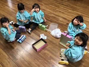 今日はクリスマス会の時に使うプレゼントBOX作りを行なっていました。