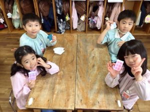 サンタさんを分かっている子は「サンタさん出来た〜!」と喜ぶ姿も見せていました。