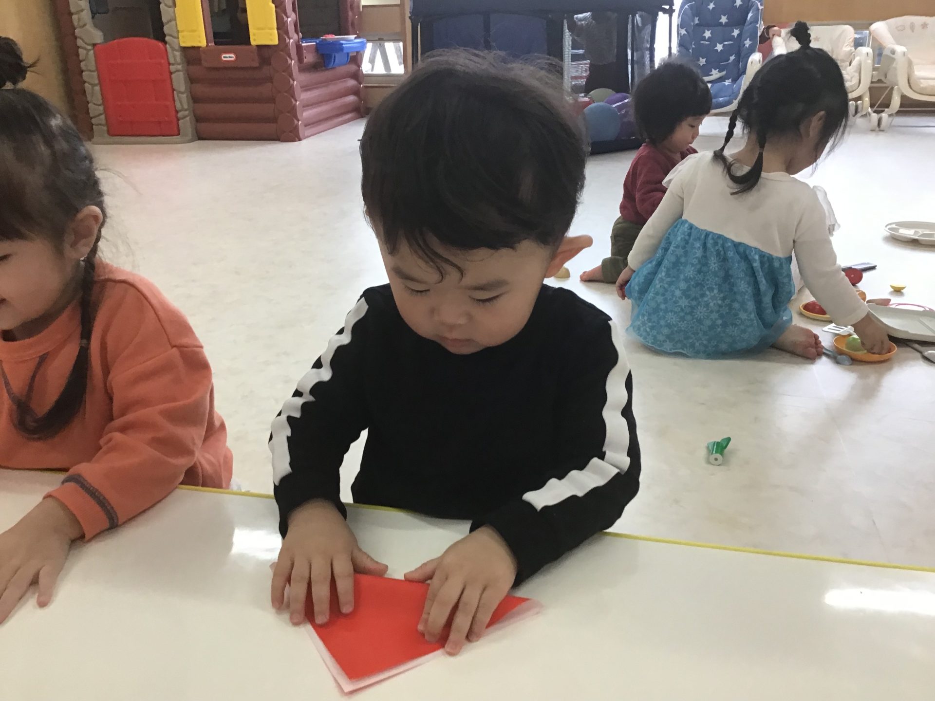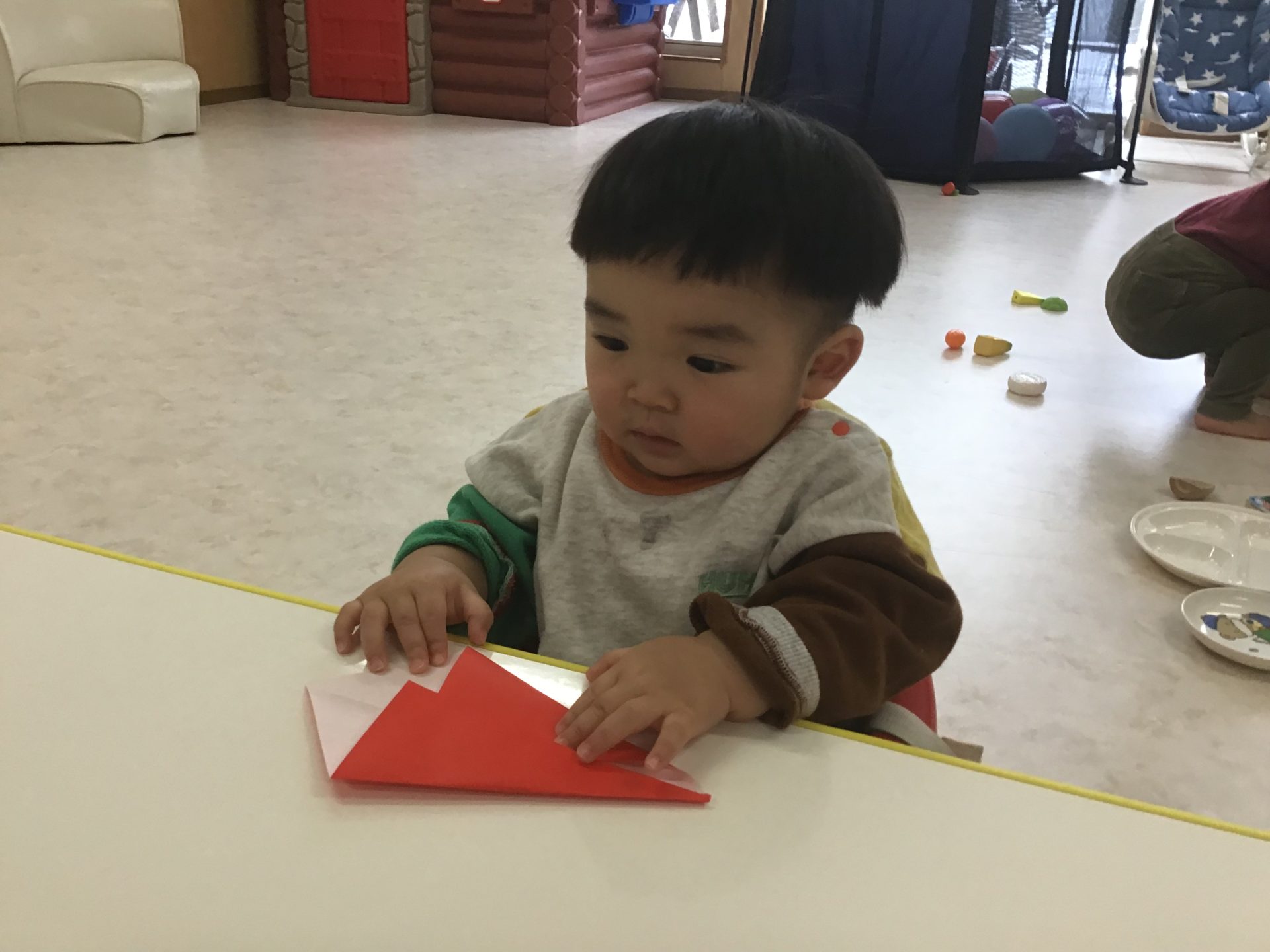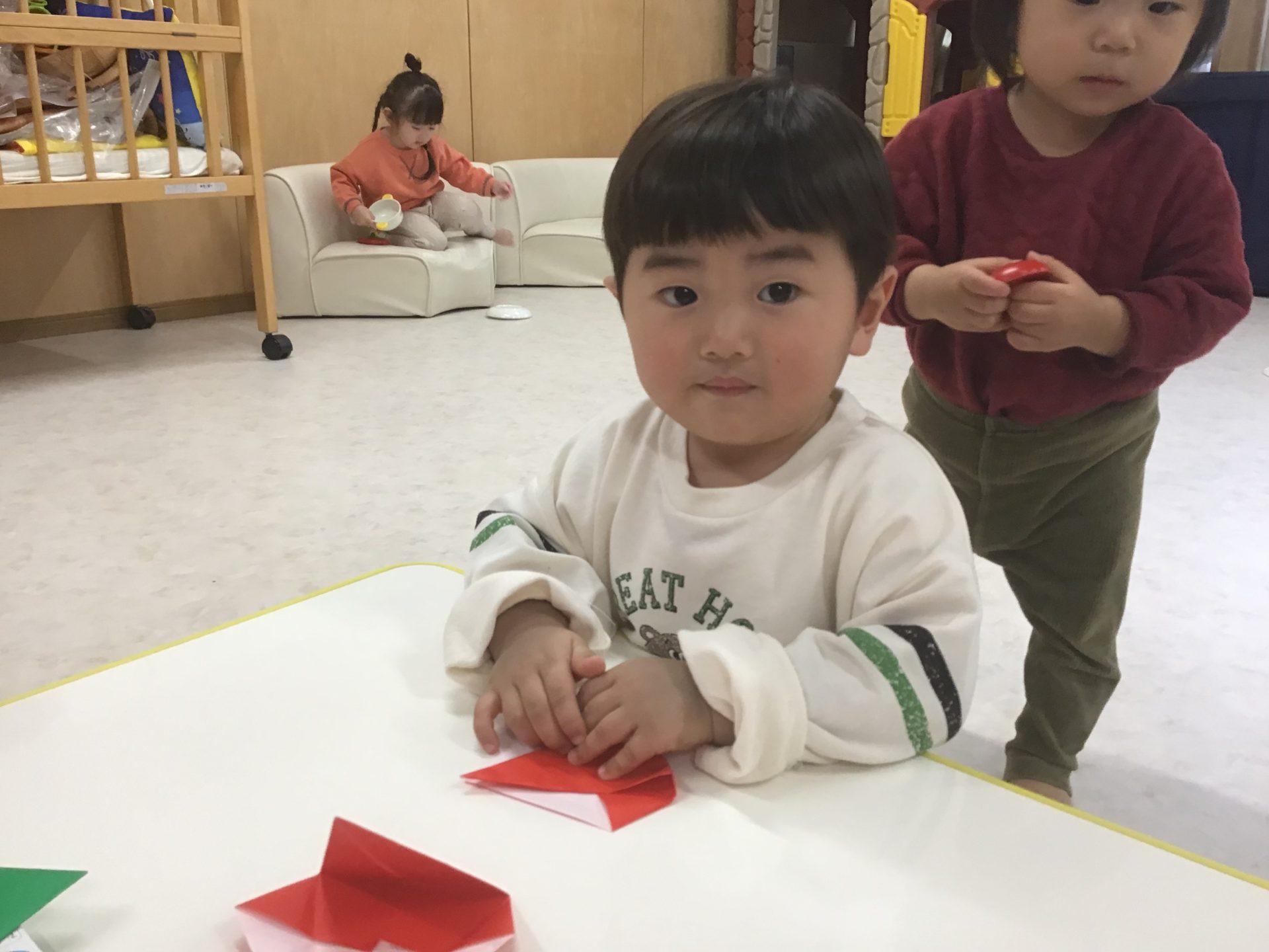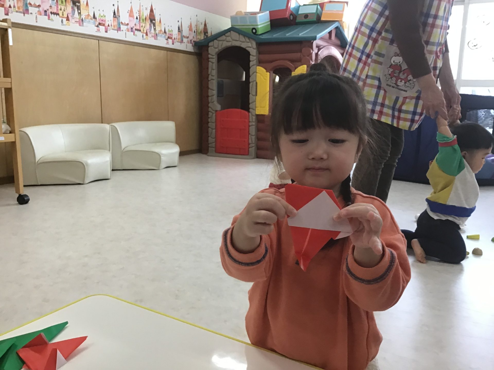 今月はサンタとツリーを作る様で、何人かずつ先生と一緒に折っていきましたよ!