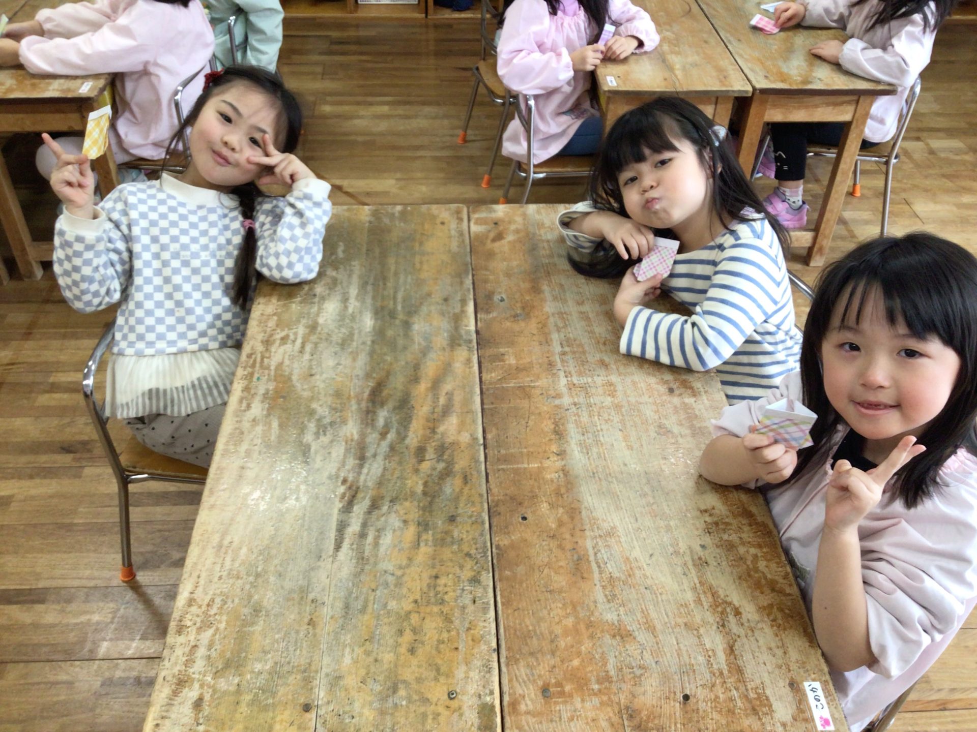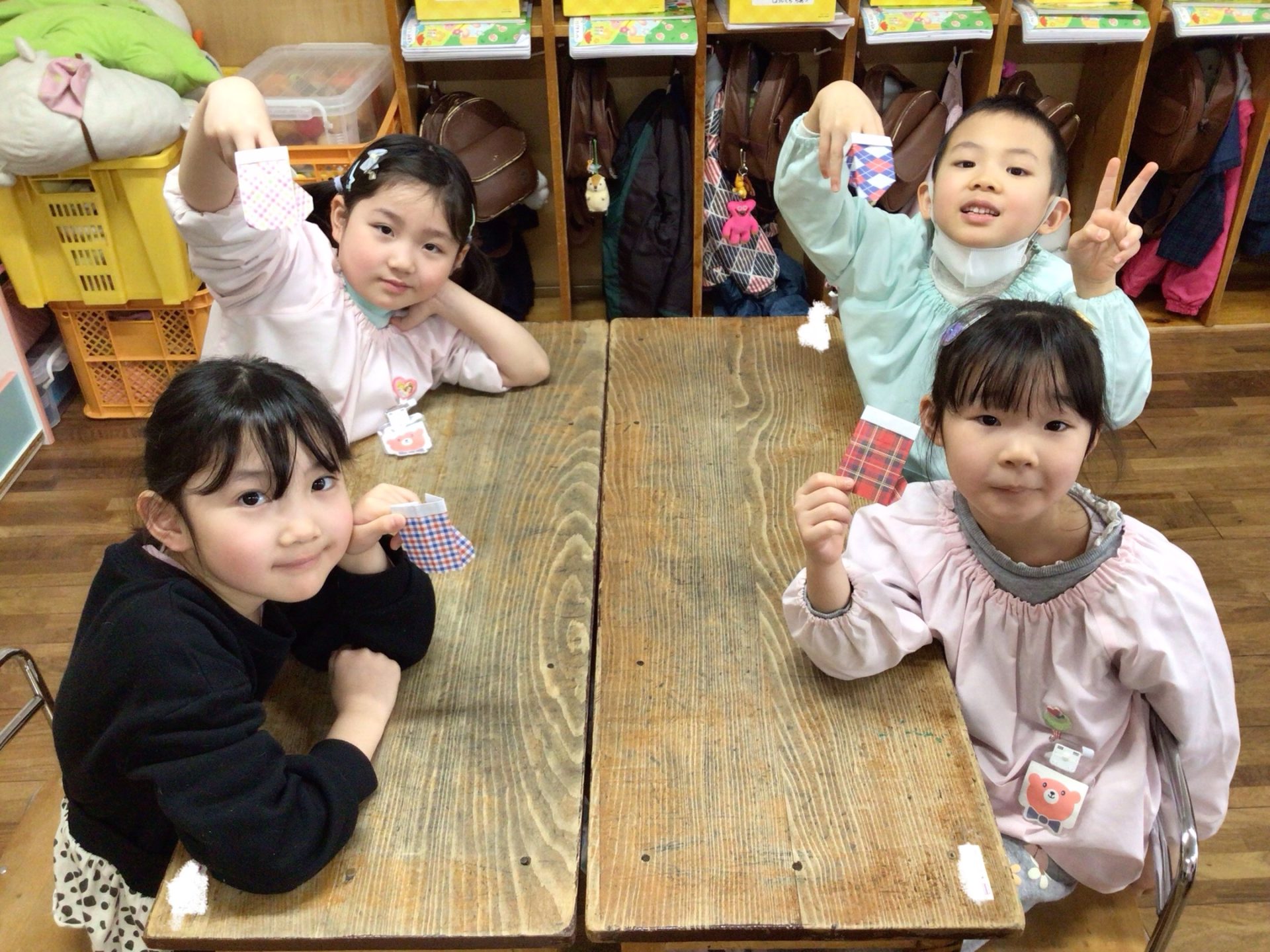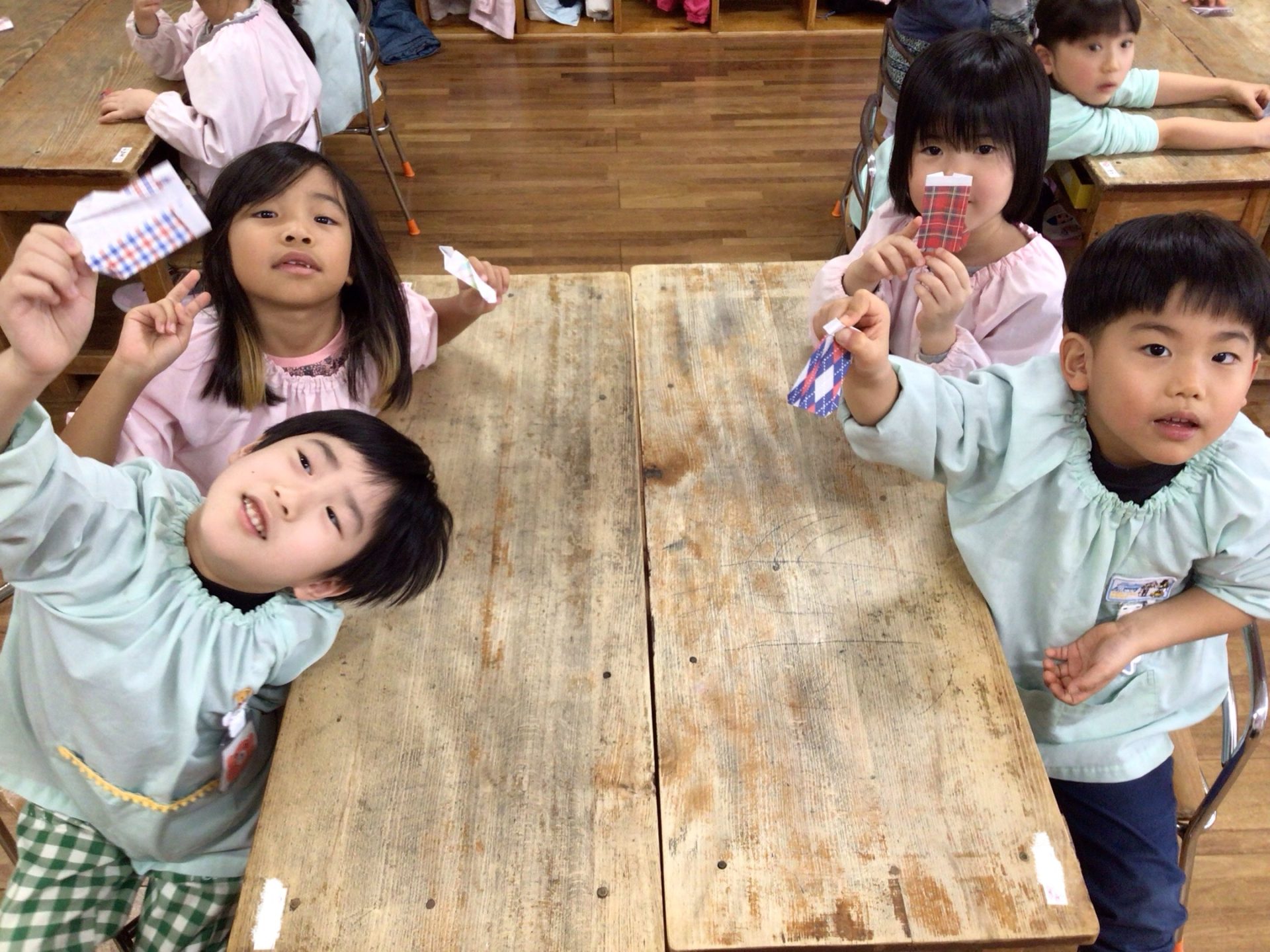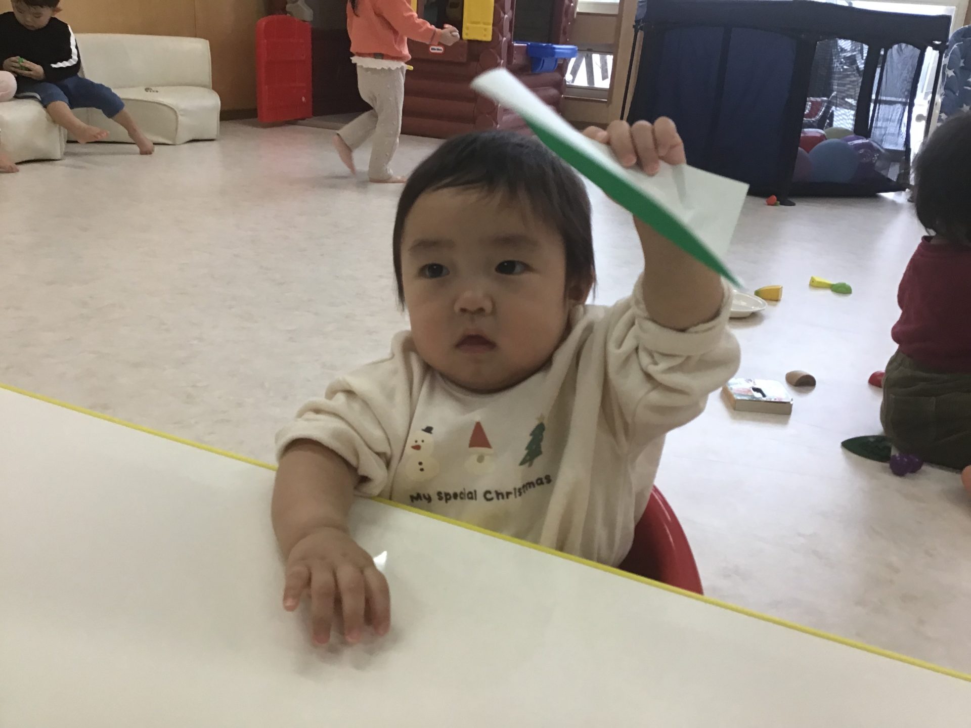 今月はサンタとツリーを作る様で、何人かずつ先生と一緒に折っていきましたよ!