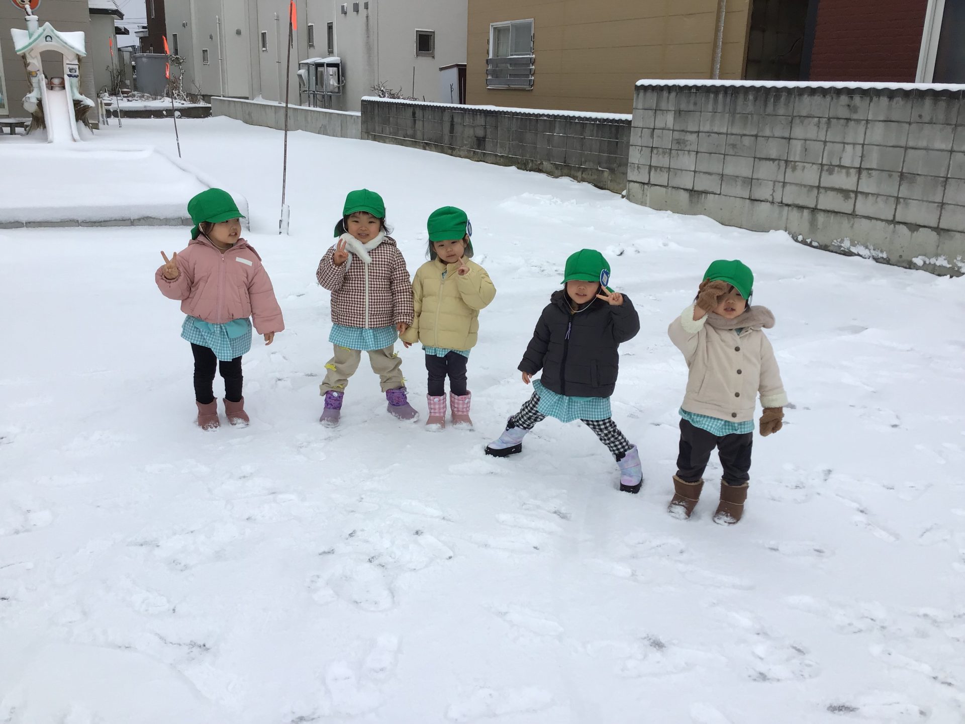 子どもたちは「雪だるま作りたい!」とニコニコで登園をしていました。