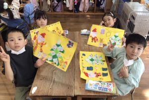 シールの貼る位置によって、それぞれ個性が出たサンタクロースに仕上がっていましたよ♩