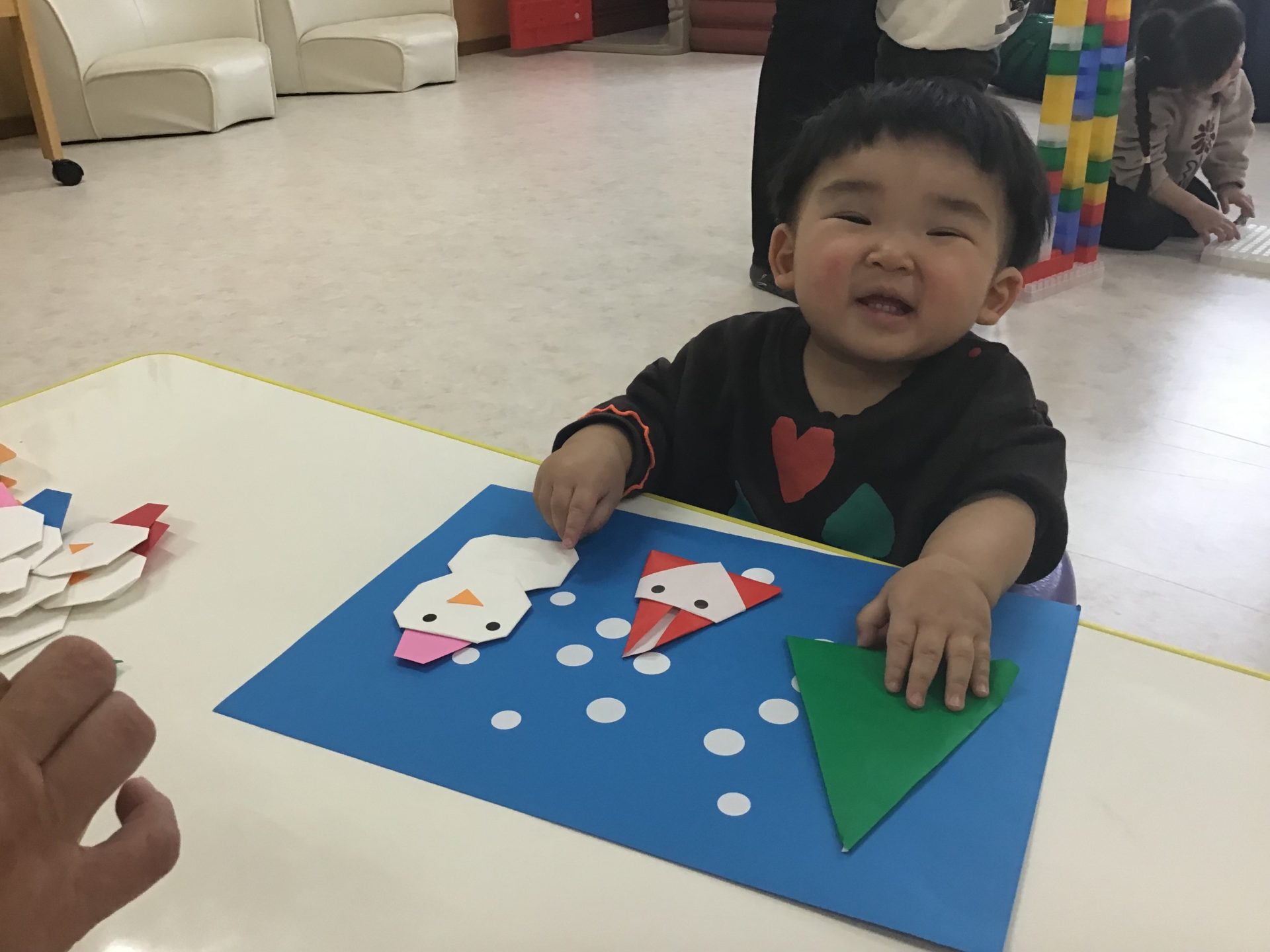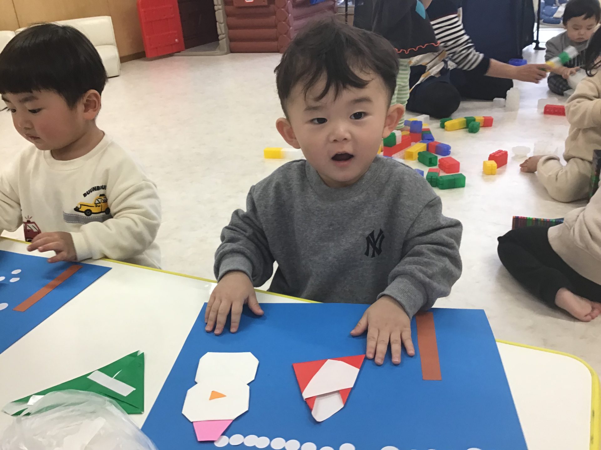 英語教室にも参加をして、ホールの中にある色々な形を探して楽しむ姿が見られていましたよ★