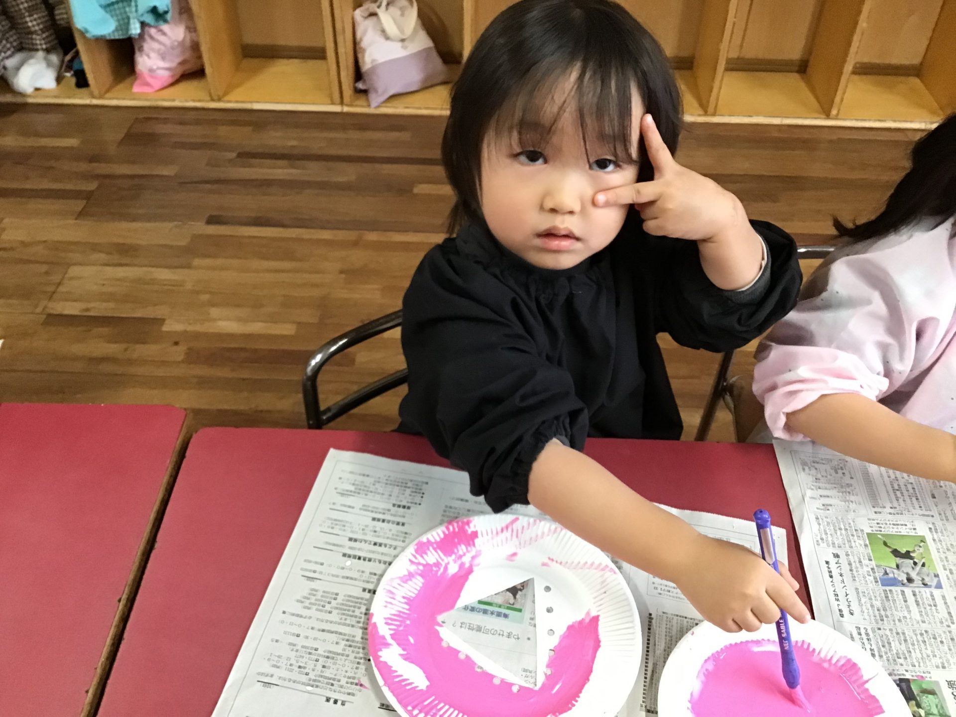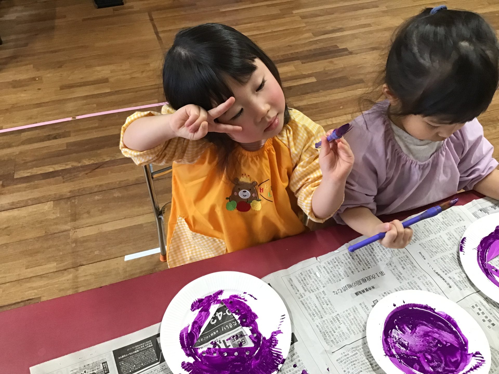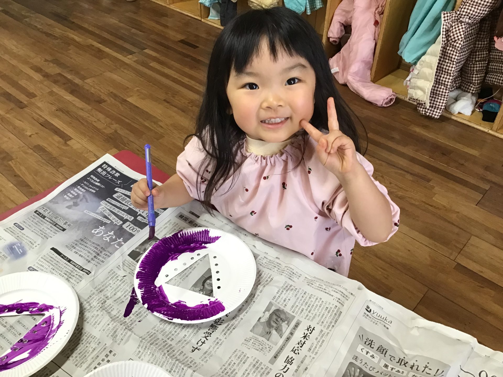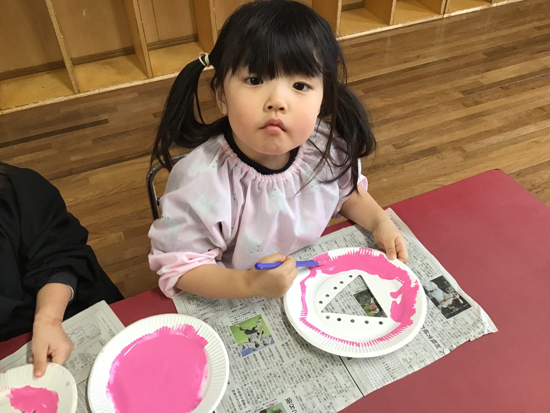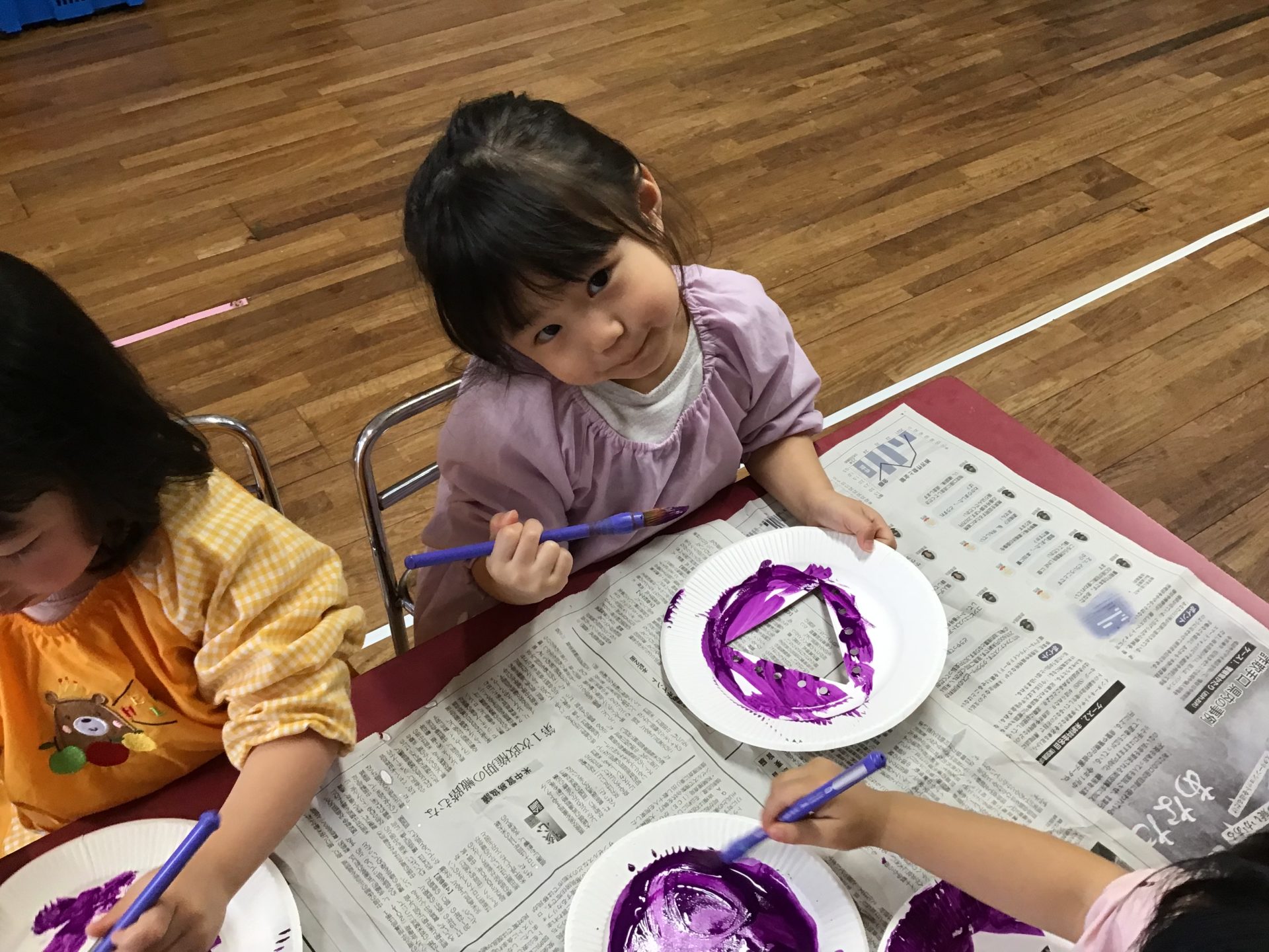 紙皿を1枚ずつ受け取り、それに絵の具で色塗りをしていきました★