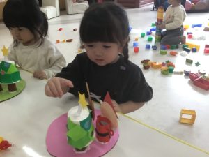 同じパーツを幾つも組み合わせてリースを作ったり、サンタを作ったりして、クリスマス気分たっぷりで制作に取り組んでいましたよ♩