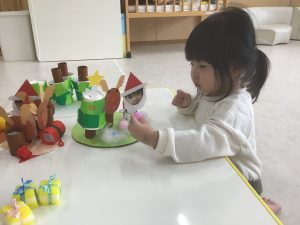 小さい手で毛糸を摘みながら毛糸を通していく姿が、とても可愛らしかったです♩