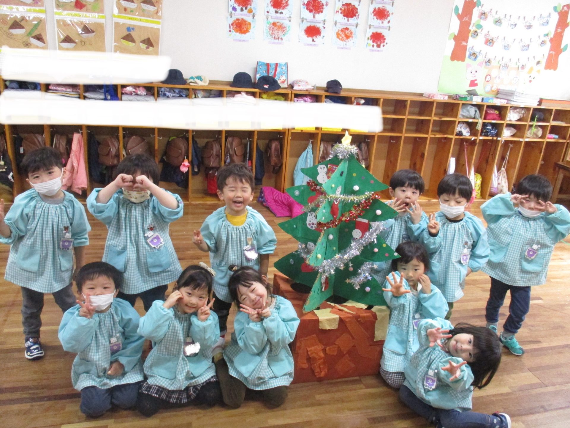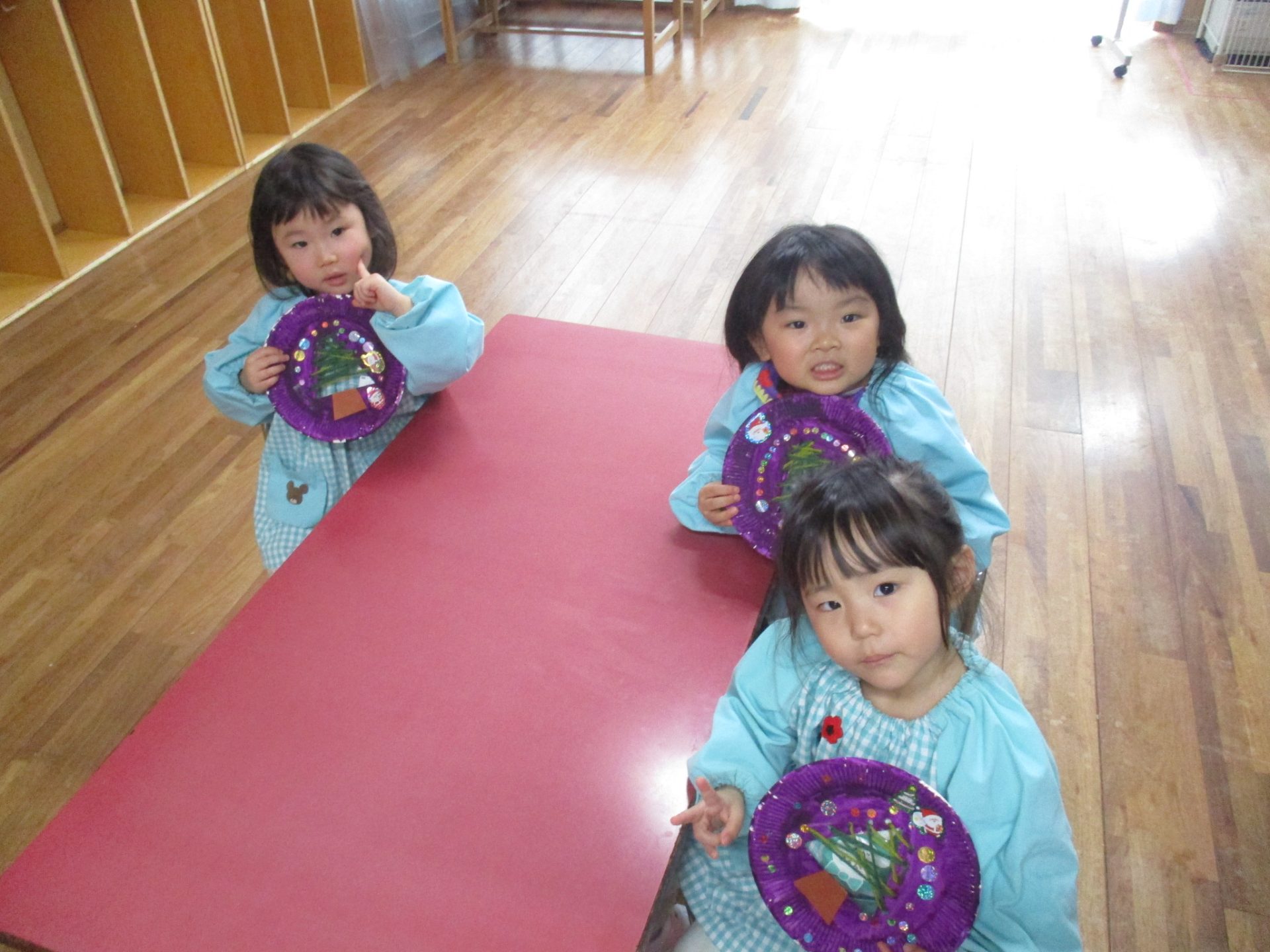 カラフルポンポンも一緒に飾ったり、キラキラモールで飾っていったので、本物のツリーの様になって、子どもたちも出来栄えに満足気な表情を見せていましたよ♩