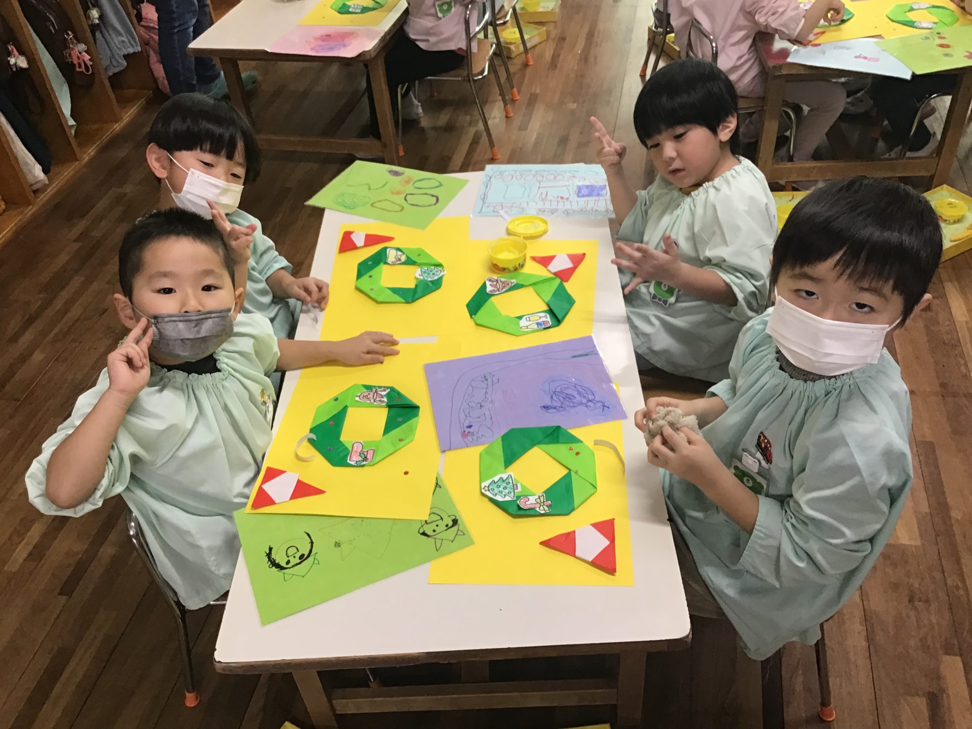 同じパーツを幾つも組み合わせてリースを作ったり、サンタを作ったりして、クリスマス気分たっぷりで制作に取り組んでいましたよ♩
