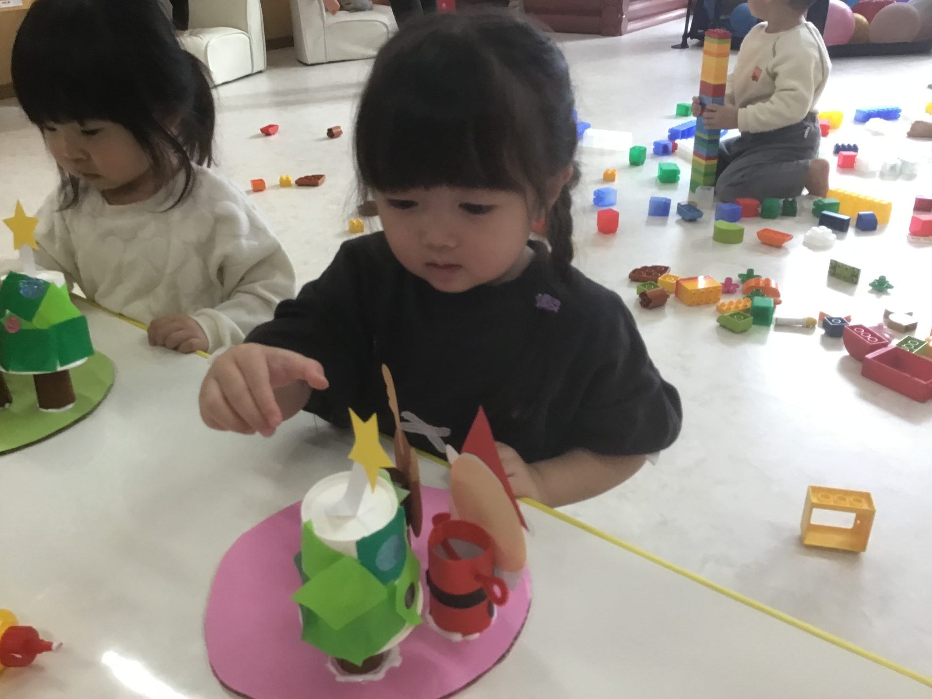 サンタさんに貰うプレゼントについてお友だちと話したりしながら、楽しそうに作っていました★