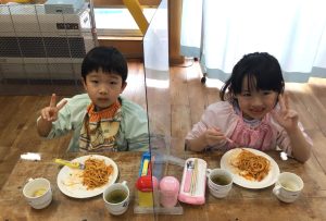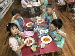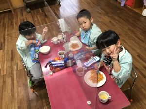 それではお部屋での様子、お給食の様子写真も載せておきます。