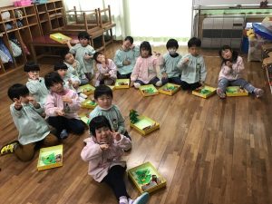 最後は年長組さんが挨拶を元気にしてくれて、お誕生会を終える事ができました。