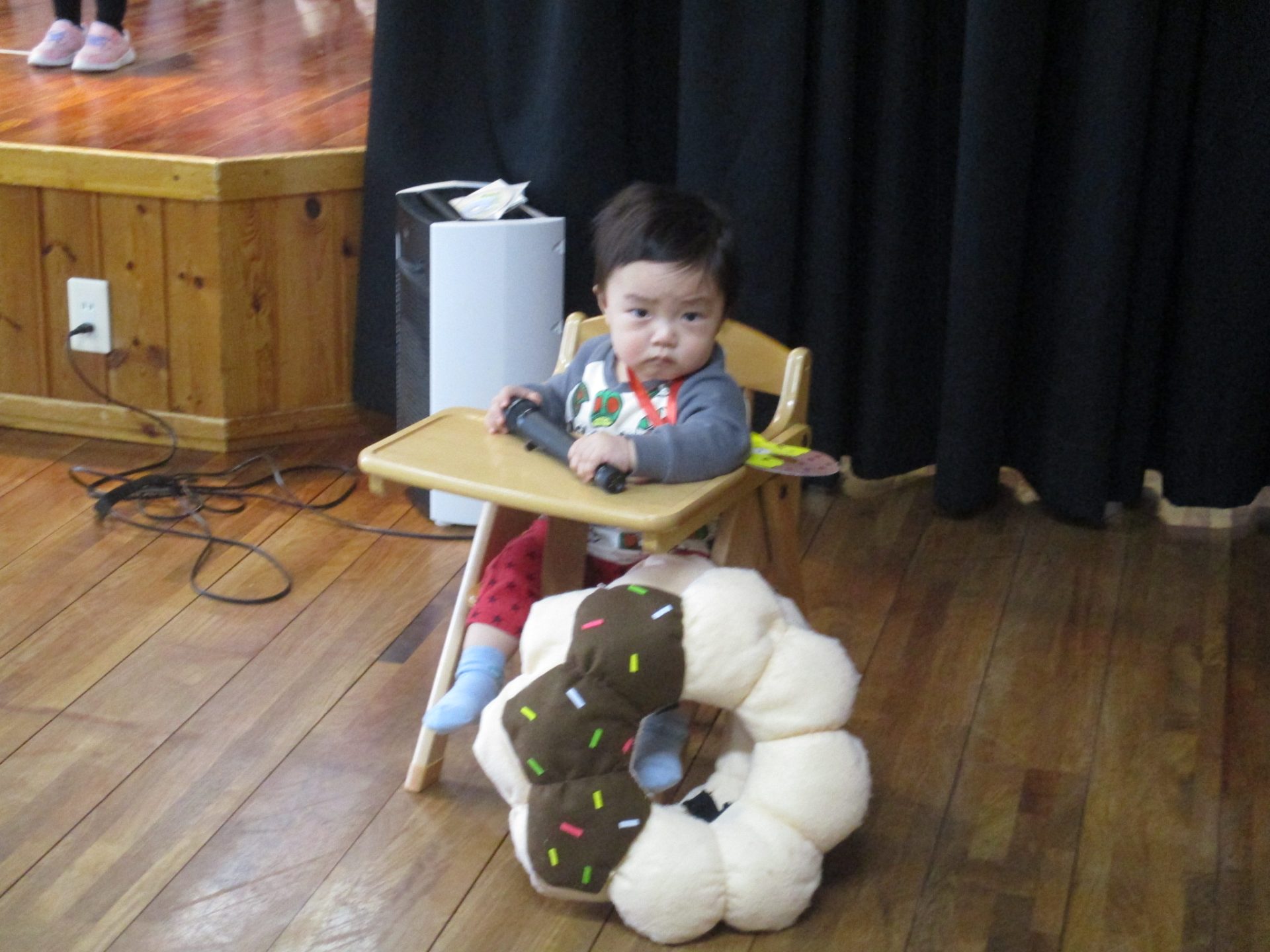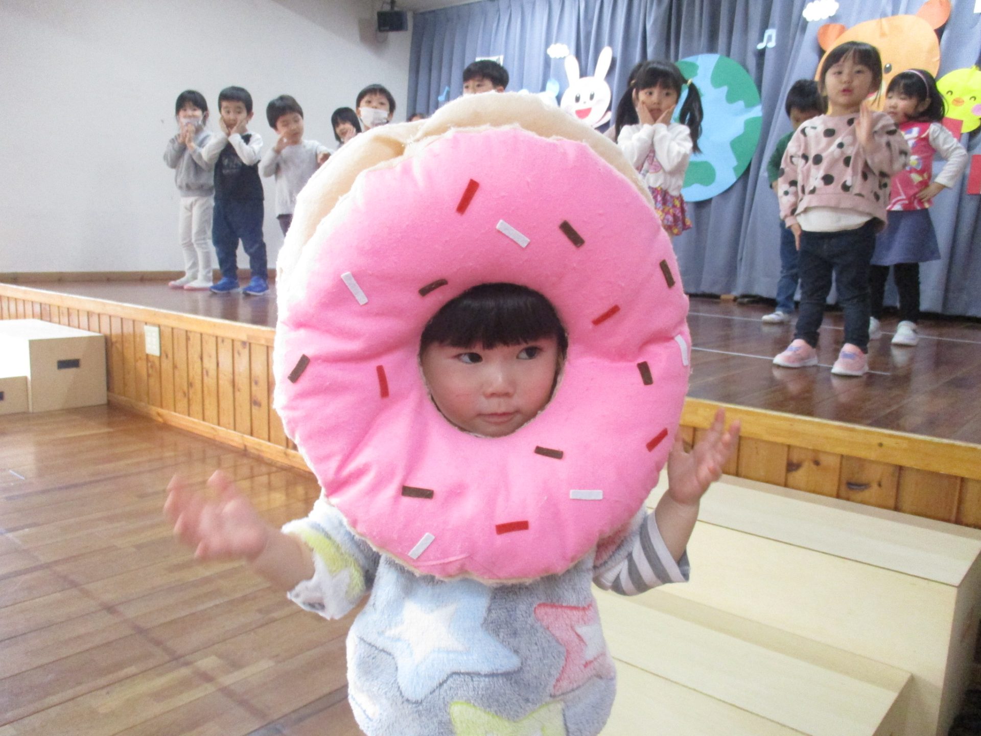 ドーナツのペンダントを首から下げてニコニコでお遊戯を披露していましたよ♩