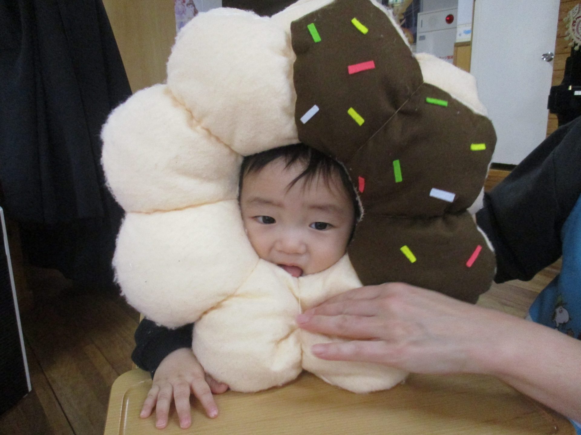 ふたば組さんは練習の時にドーナツを被っていた様子の写真を載せておきますね!