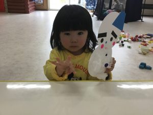 今日は色画用紙を使って雪だるま作りを行なっていました。