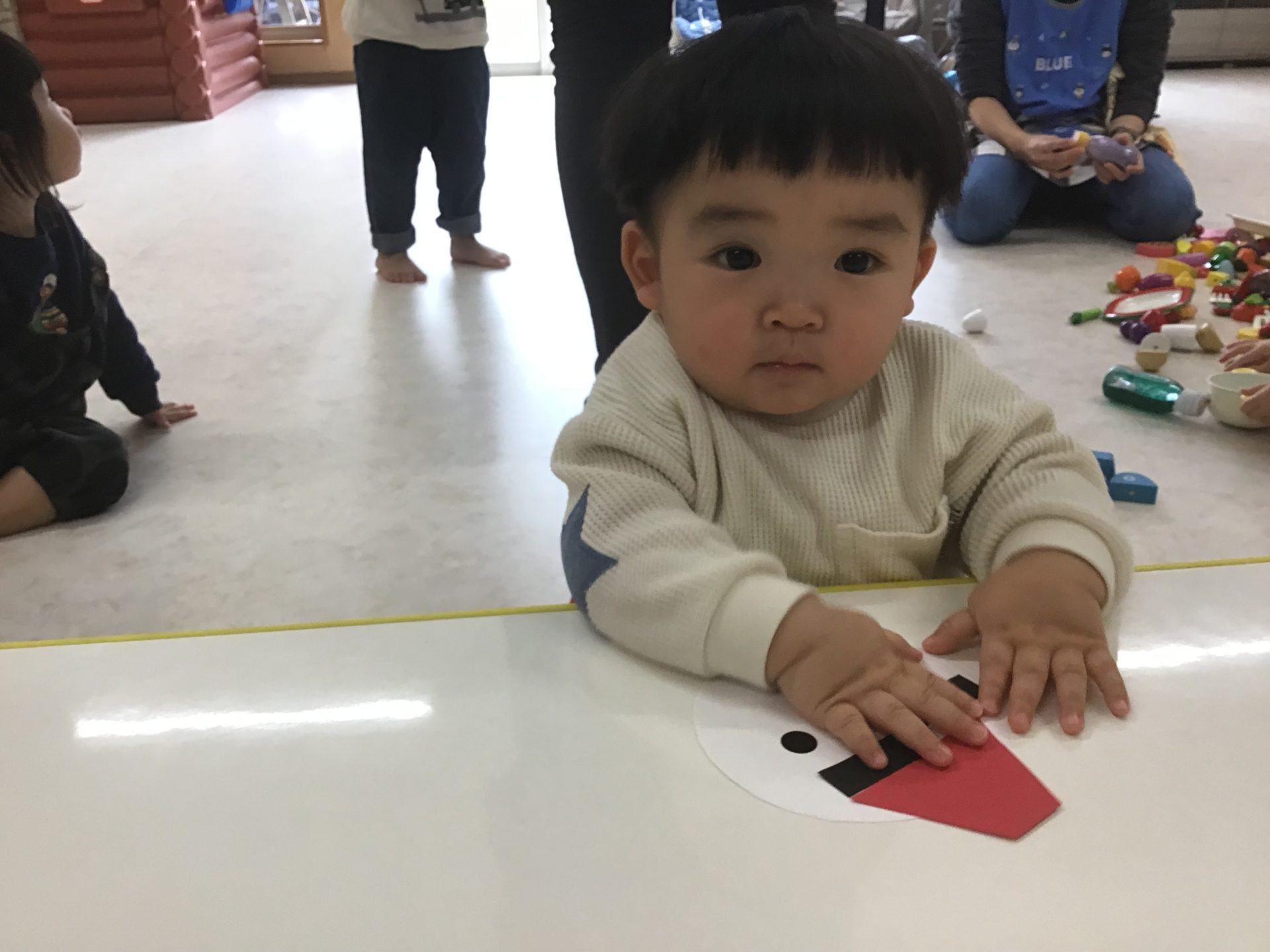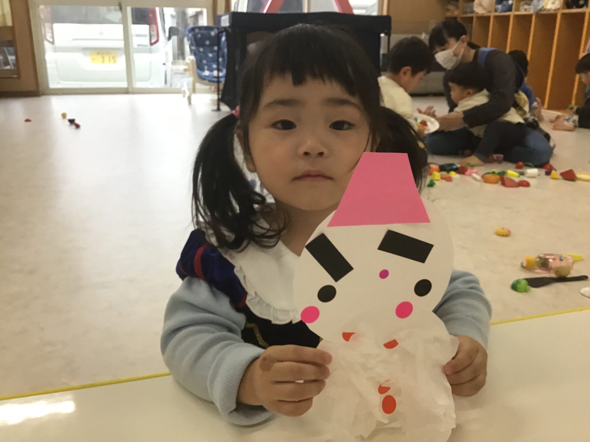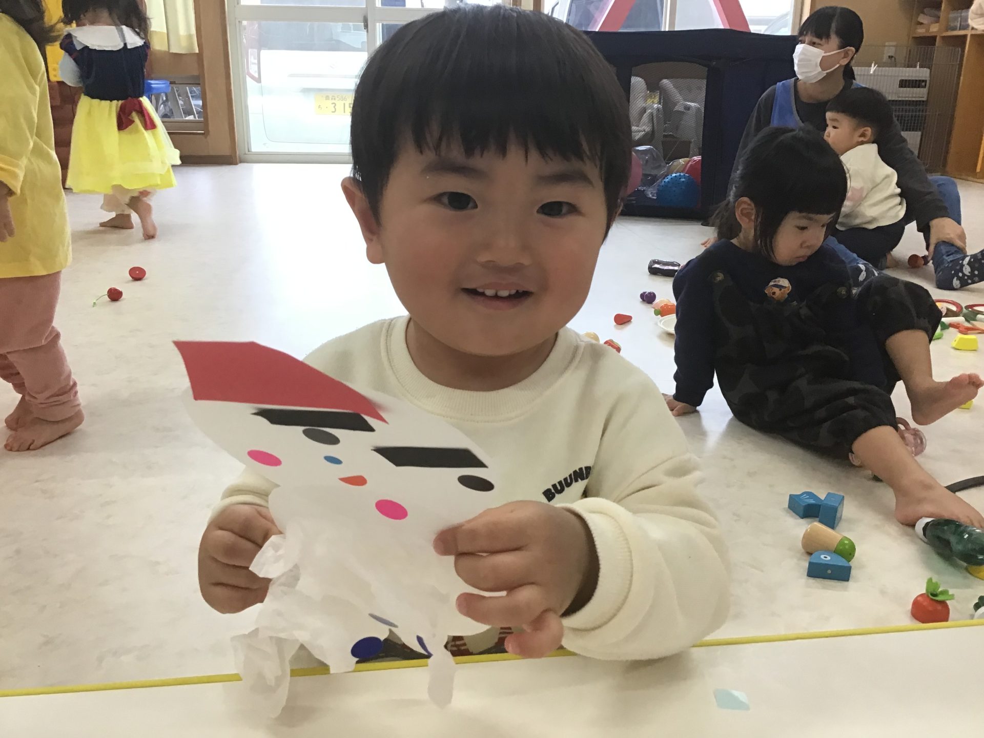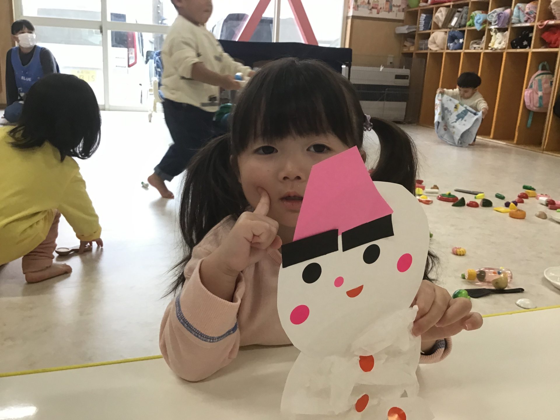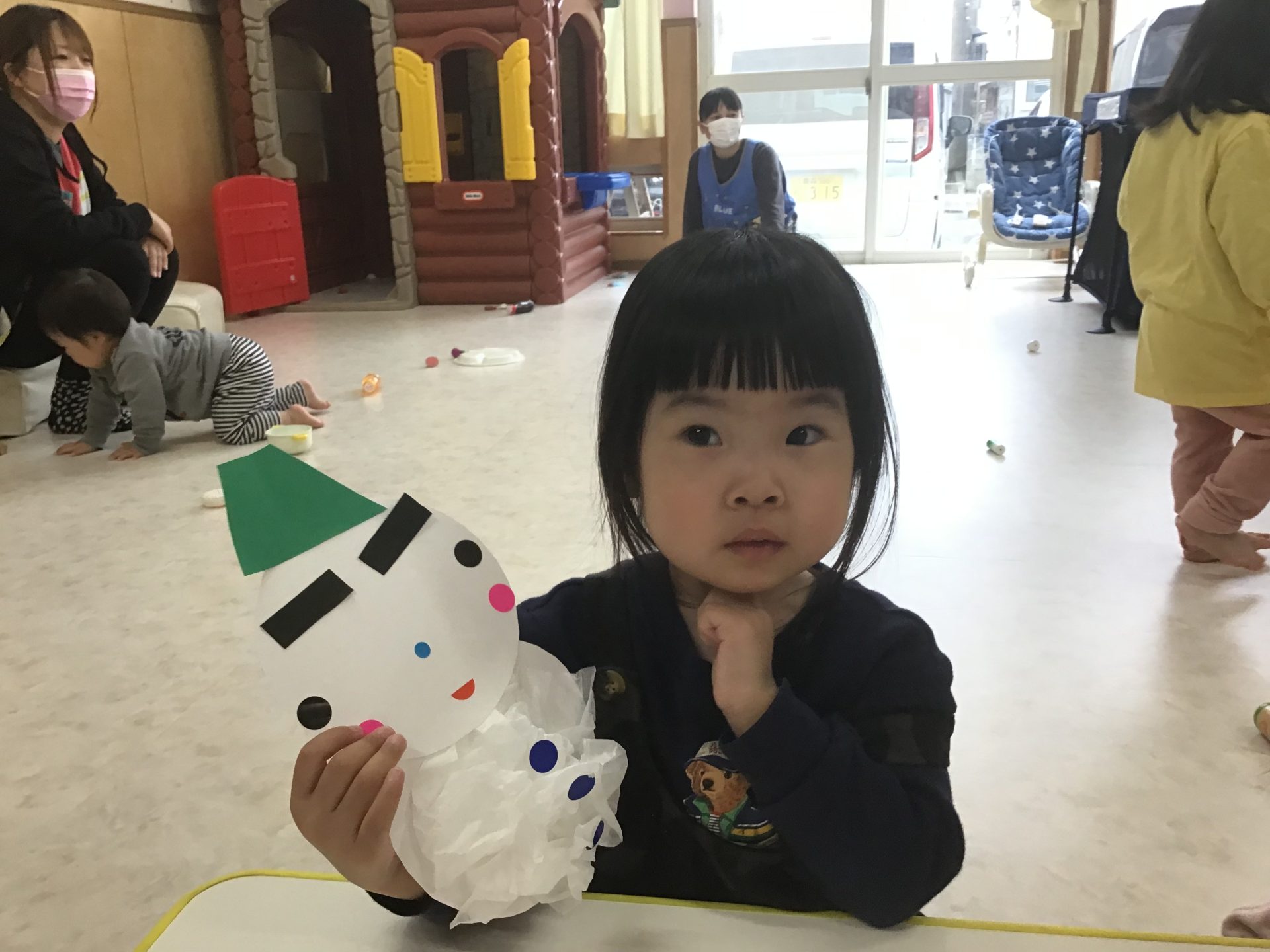 今日は色画用紙を使って雪だるま作りを行なっていました。